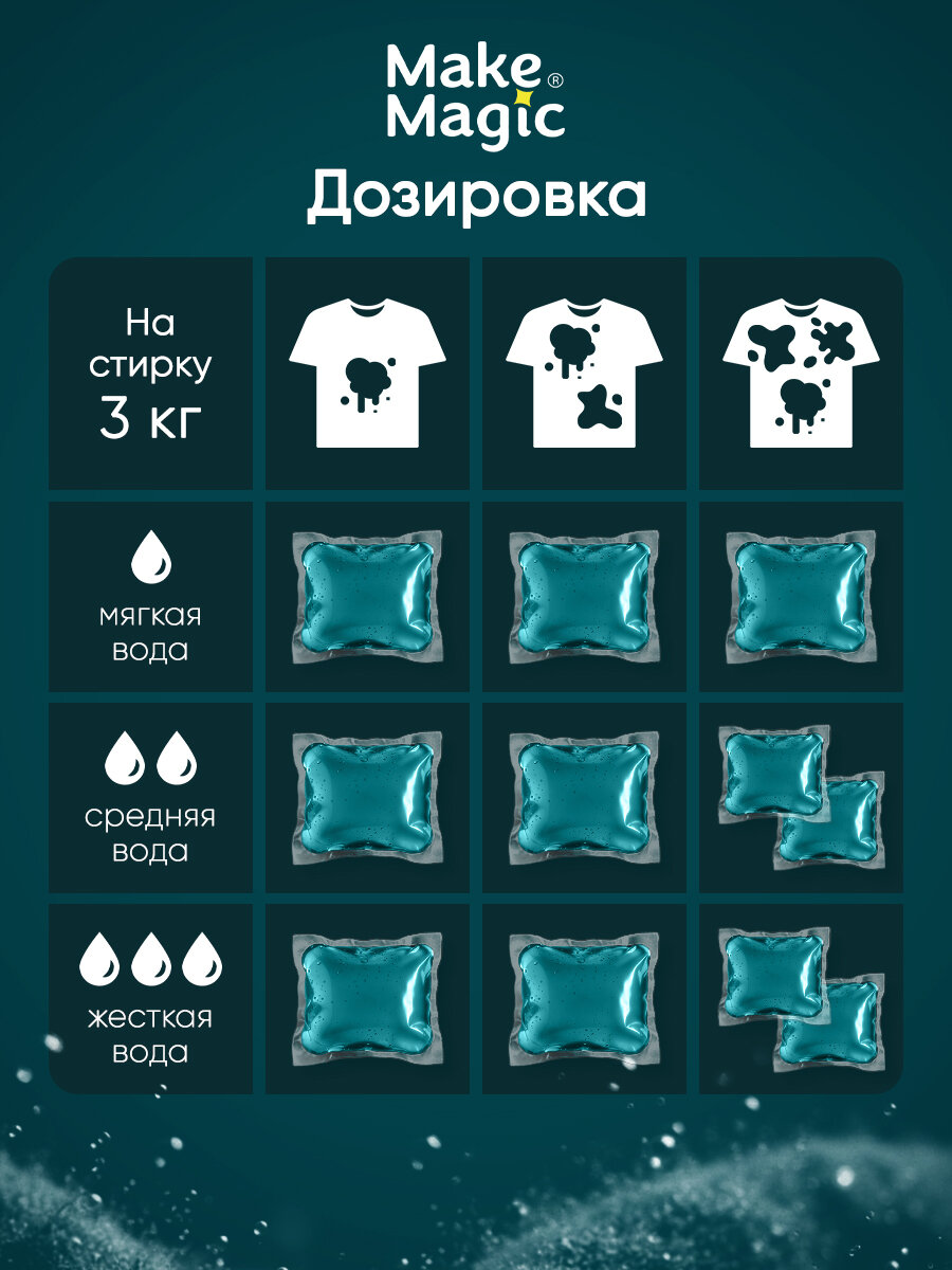 Капсулы для стирки белья Make magic 30 шт универсальные, очищение и ароматизация, удаление пятен и загрязнений, свежесть океана
