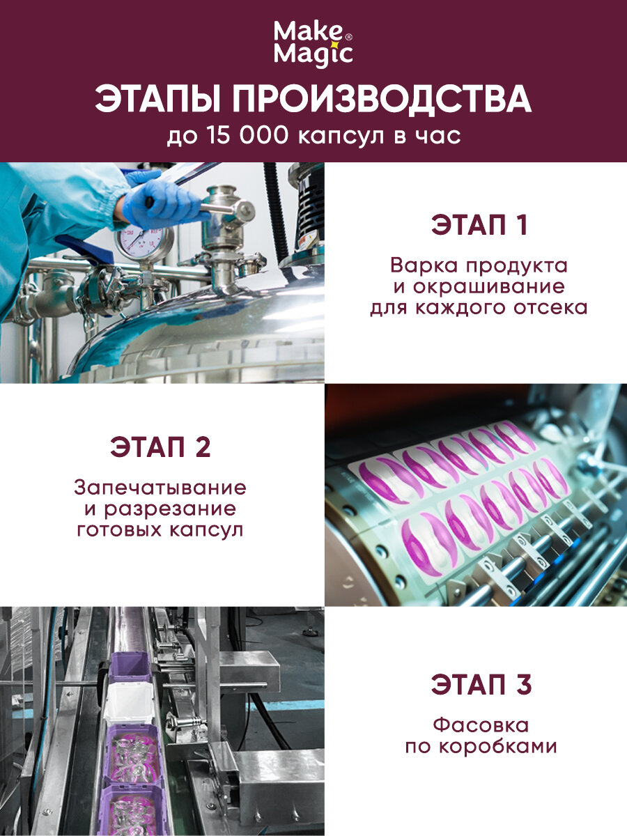 Капсулы для стирки белья Make magic 30 шт универсальные, очищение и ароматизация, удаление пятен и загрязнений, аромат лаванды