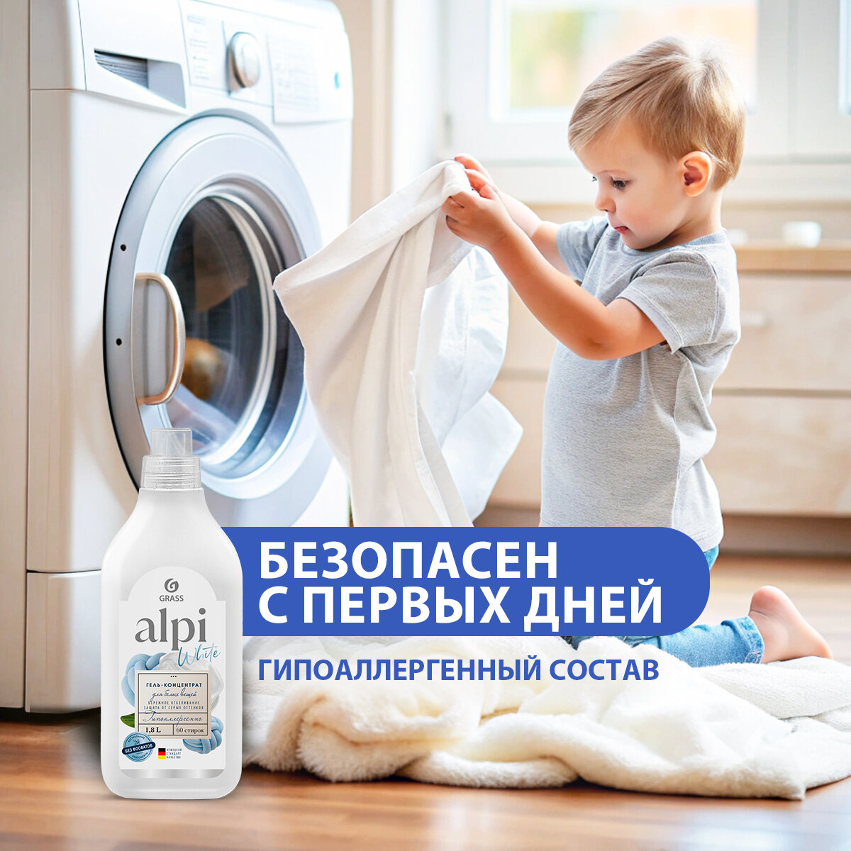 СохранитьGRASS/ Гель для стирки белой одежды ALPI white gel, бережное отбеливание, гипоаллергенно, концентрат, 60 стирок, 1800 мл. интересное: