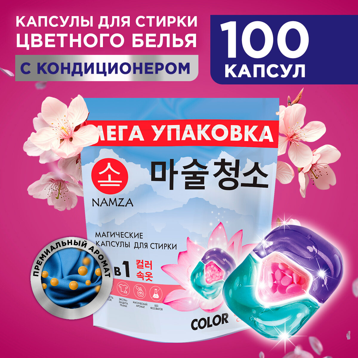 Купить Капсулы для стирки белья с кондиционером 3 в 1 NAMZA, средство для стирки цветного белья 100 шт.