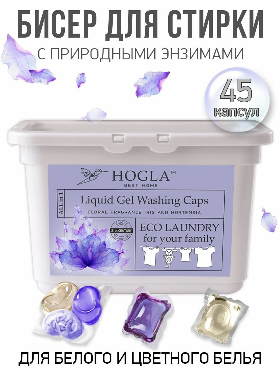 Набор Бисер для стирки гипоаллергенный гель Ирис и Гортензия 2 бокса по 45 шт