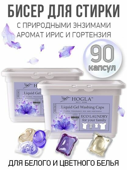Купить Набор Бисер для стирки гипоаллергенный гель Ирис и Гортензия 2 бокса по 45 шт