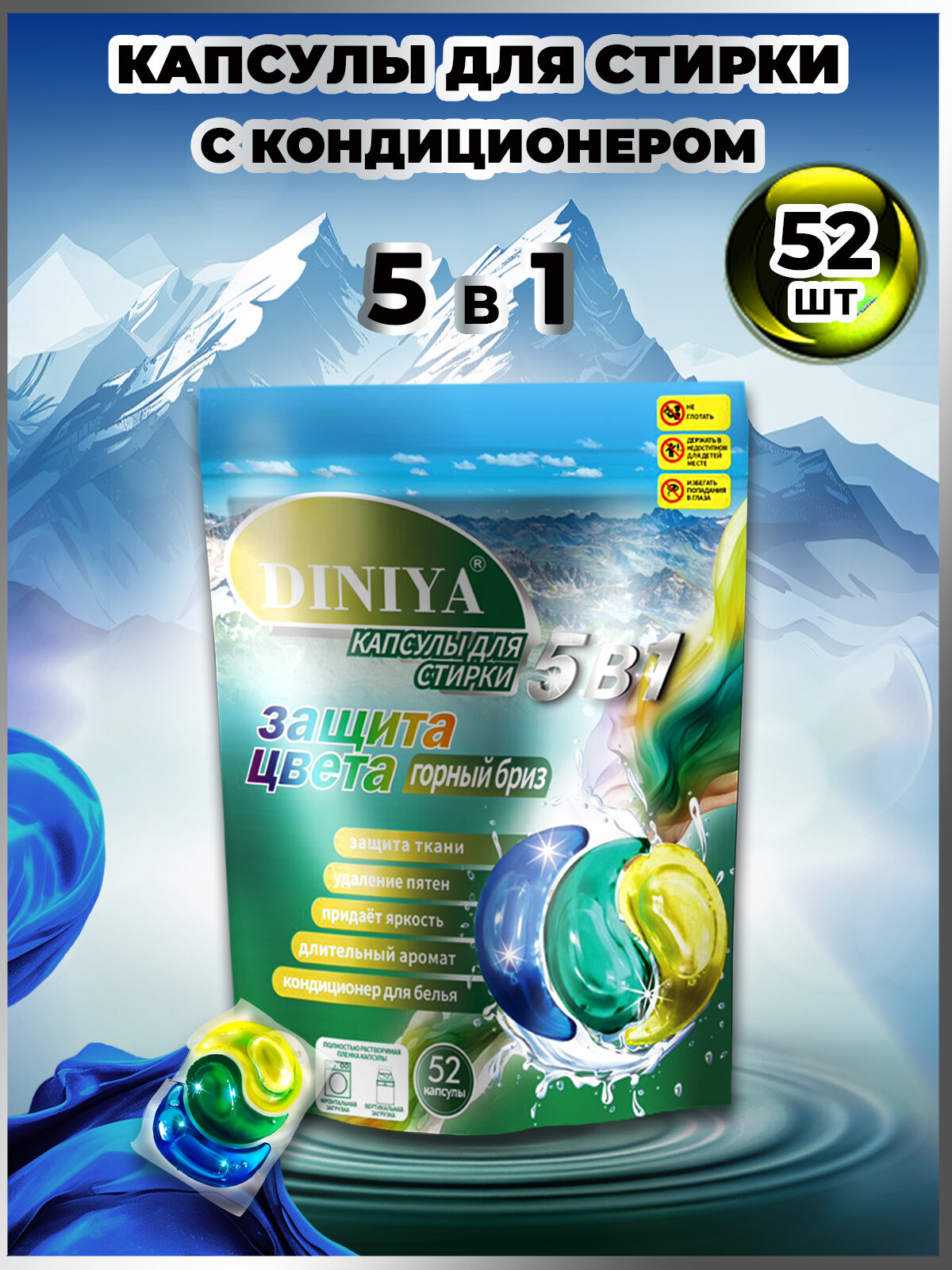 Капсулы для стирки 5 в 1 пакет Горный бриз интересное: