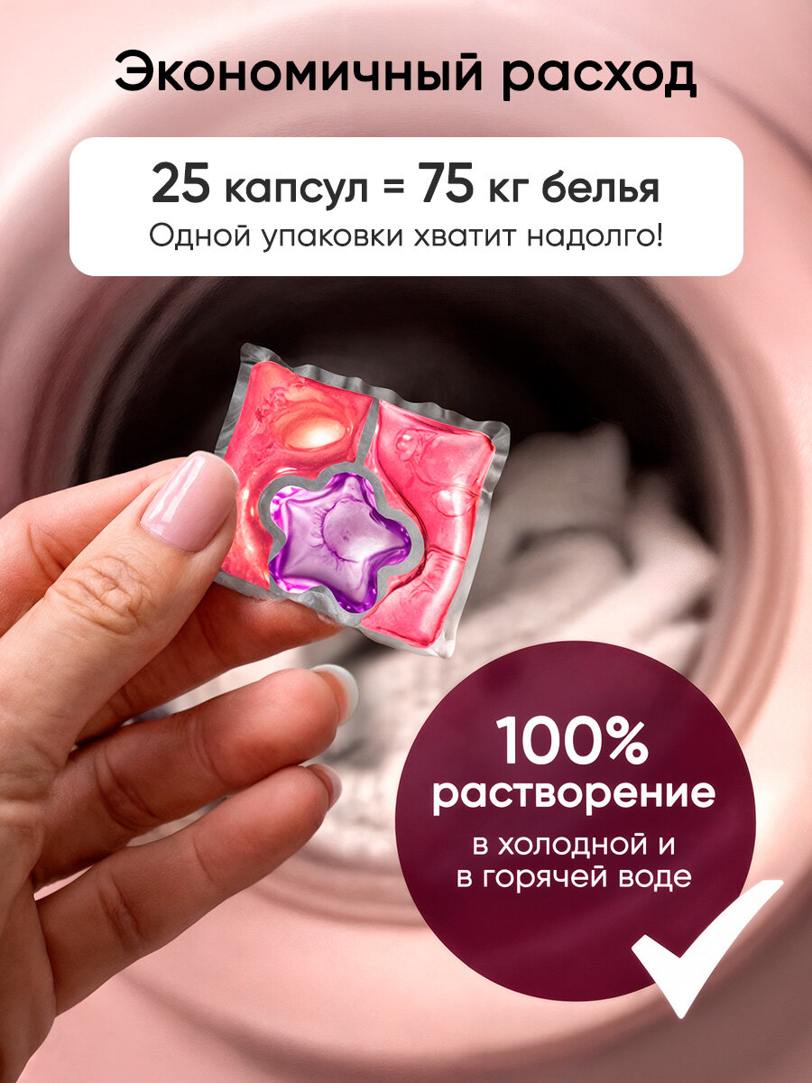 Парфюмированные капсулы для стирки белья Make magic 25 шт, универсальные, для цветного и белого, очищение и ароматизация, аромат lost cherry