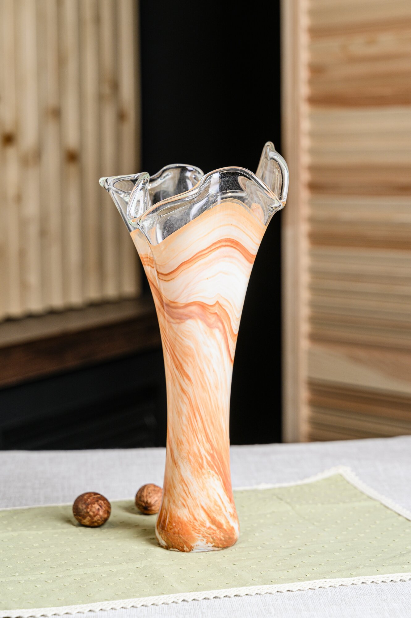 Ваза "Волна Коралл" настольная, гутное стекло, молочный коричневый интересное: