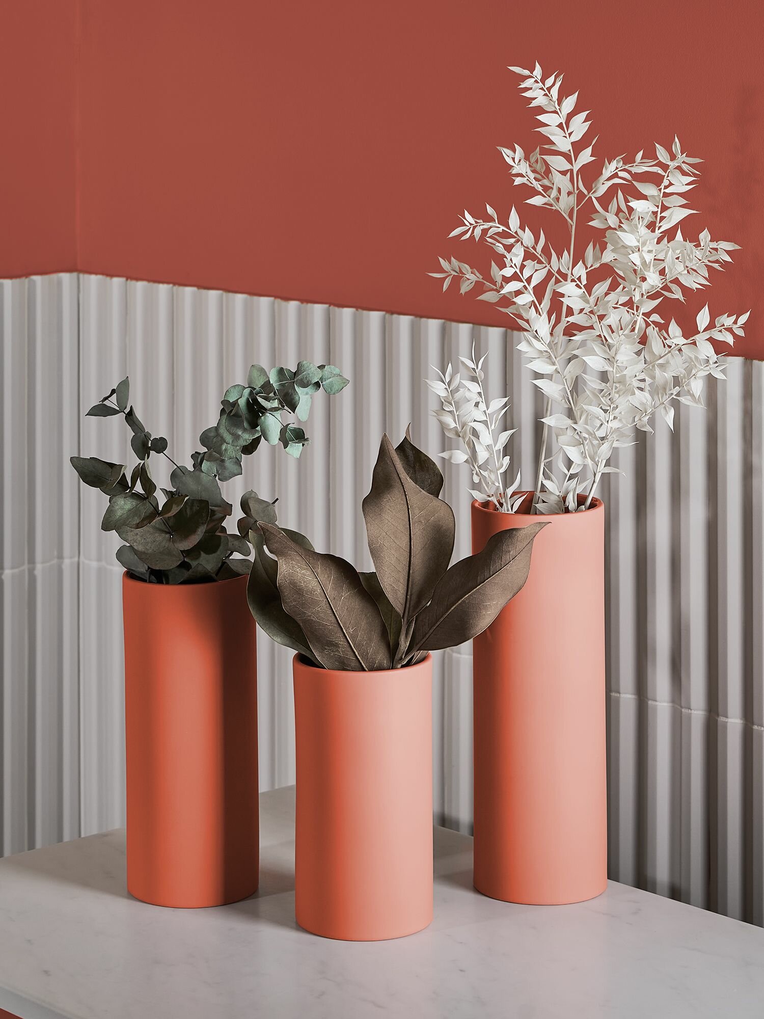 Ваза Moroshka Velvet, керамика, 10,5 см х 10,5см х 30см, коралловая, настольная