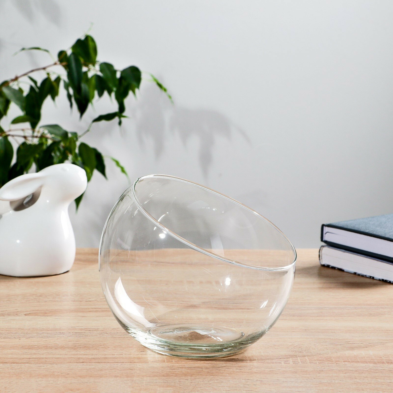 Купить Ваза "Анабель" шаровая с косым резом d-19x14,5см, 1,5л. стеклянная прозрачная интерьерная настольная