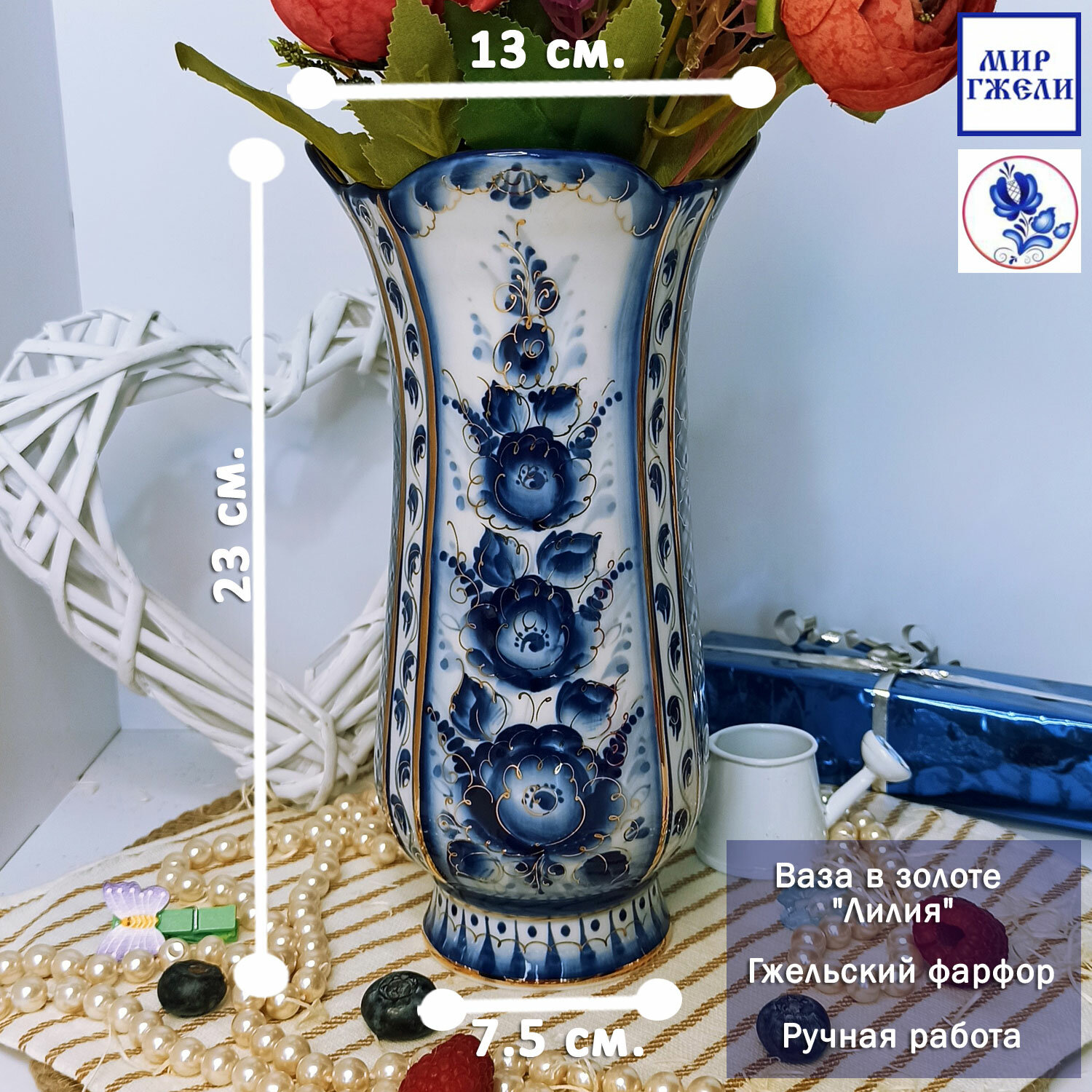 Ваза в золоте для цветов "Лилия" 23 см. Гжель, ручная работа интересное: