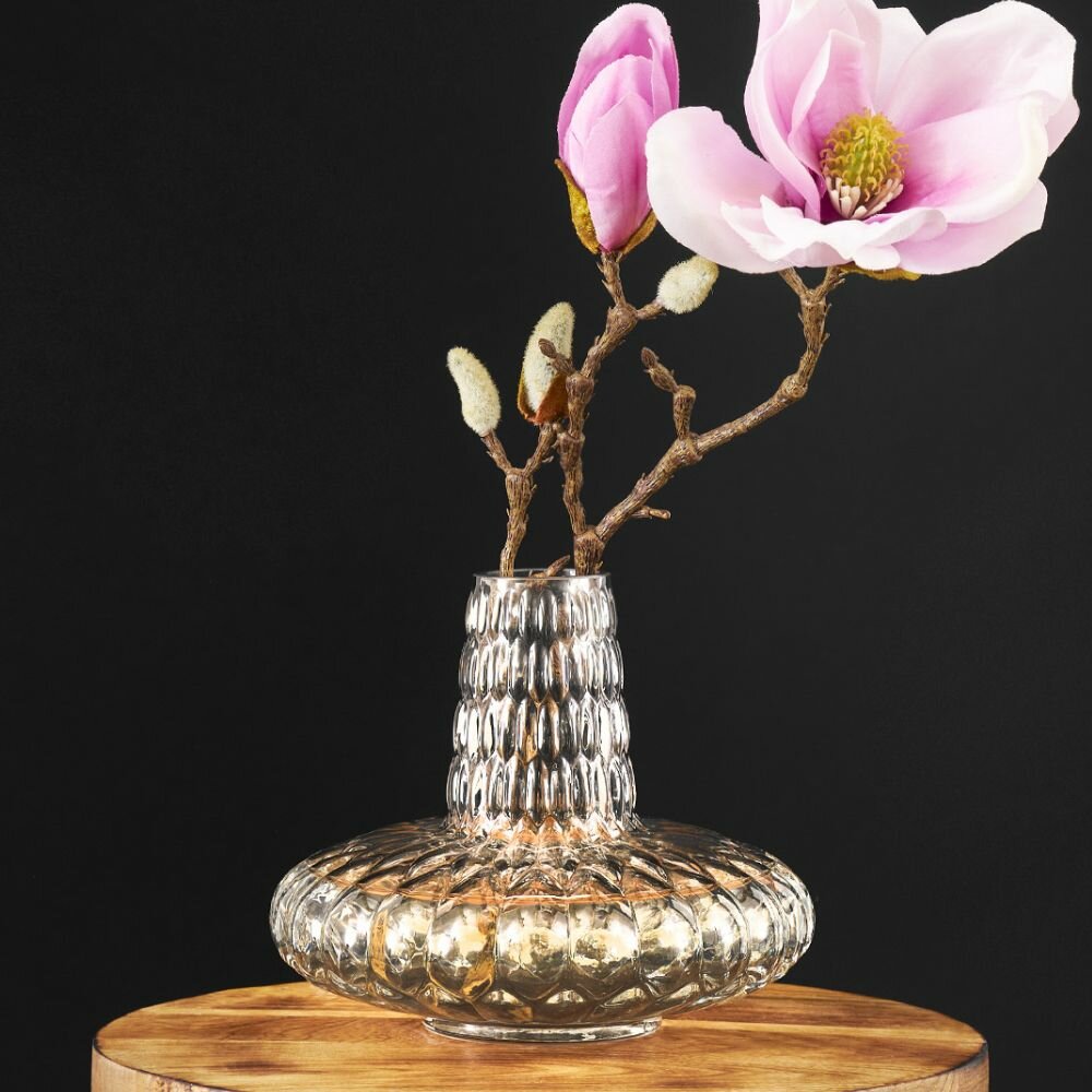 Ваза бокал для цветов и сухоцветов стеклянная прозрачная декоративная интерьерная Орей D14.5xH23.5см