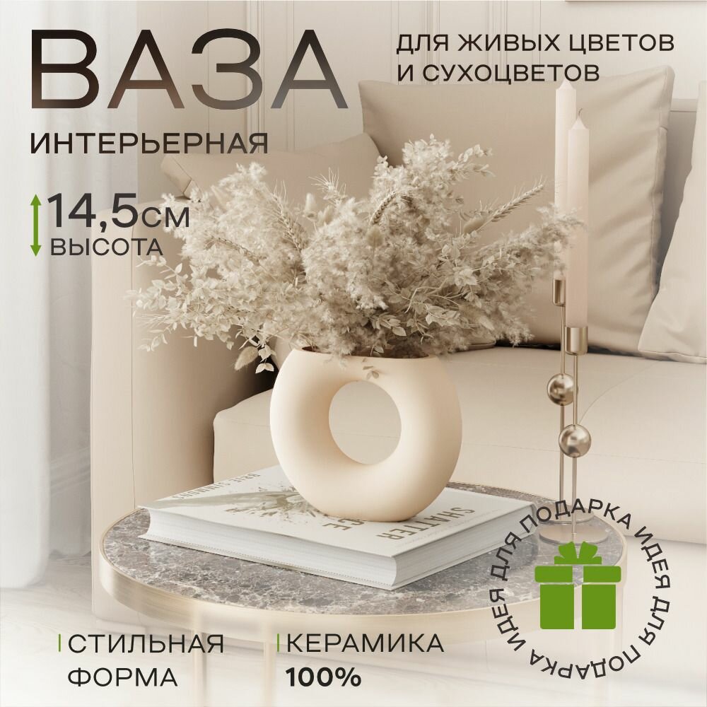 Ваза декоративная Akvali для сухоцветов, декора и интерьера, керамика, 21см, цвет бежевый