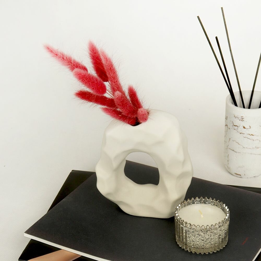 Ваза для цветов Akvali , для декора, рельефная, керамика, цвет белый 15,5 см