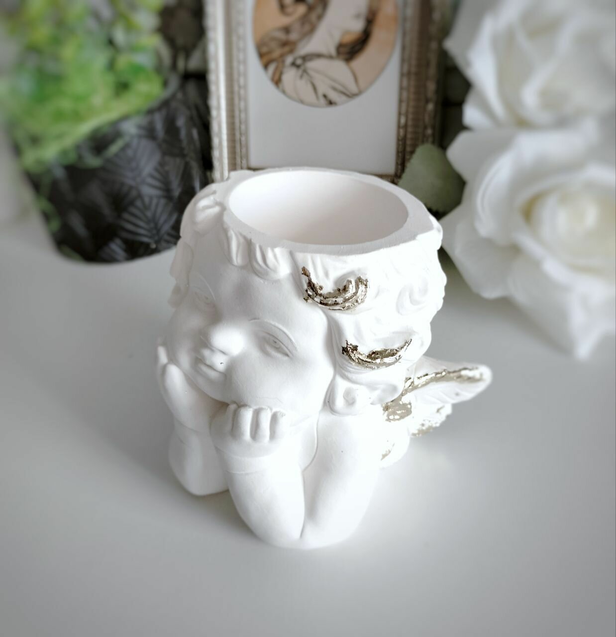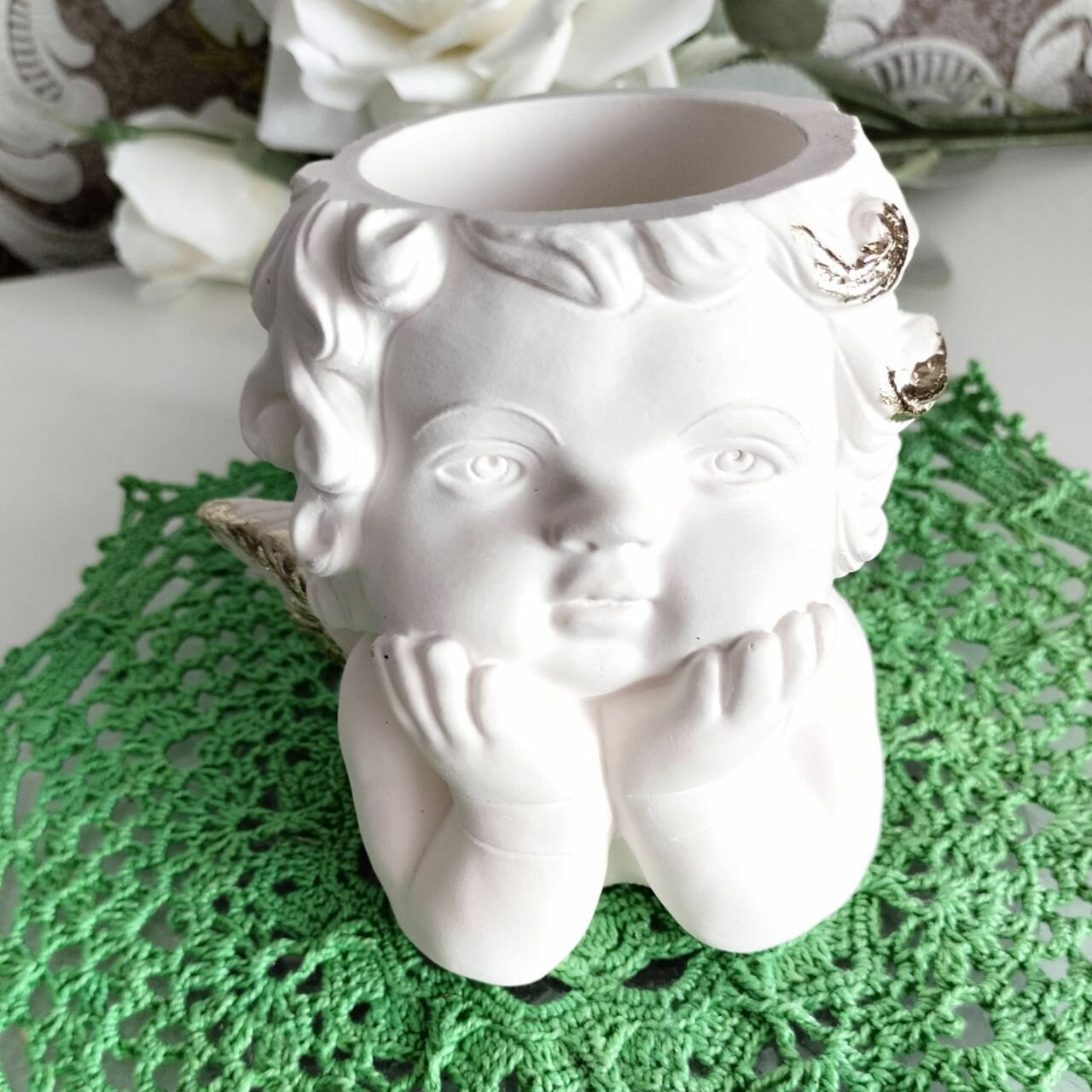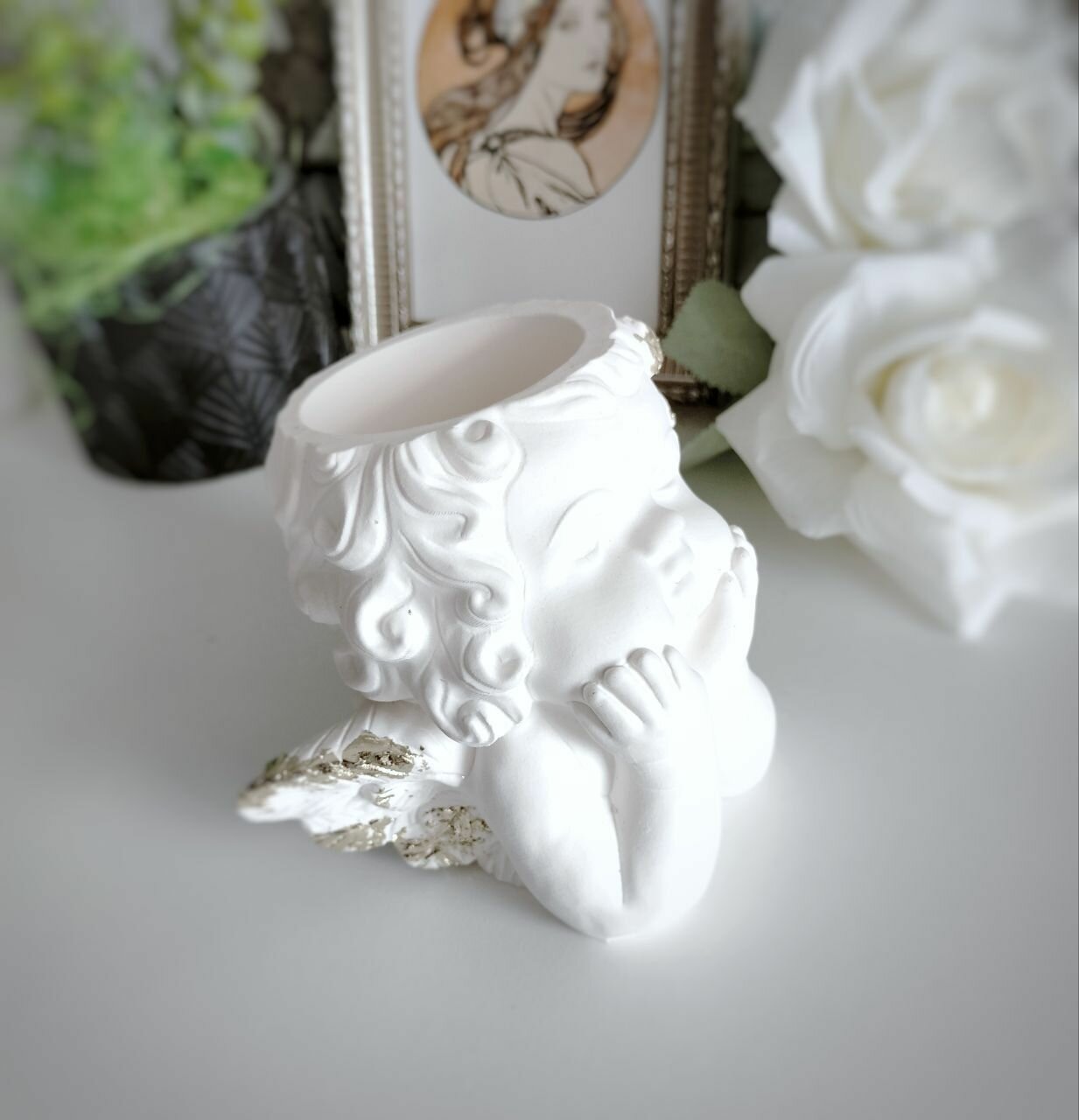 Купить Кашпо Ангел для сухоцветов, органайзер для ватных палочек, белый с золотом