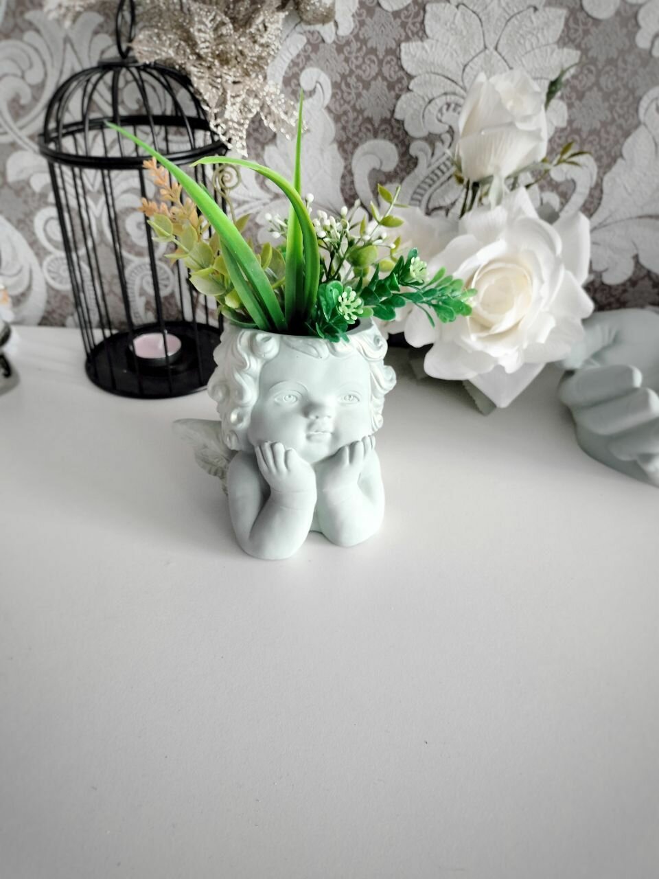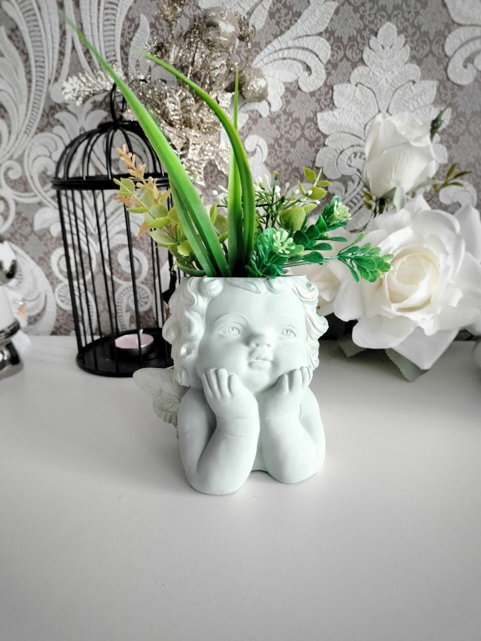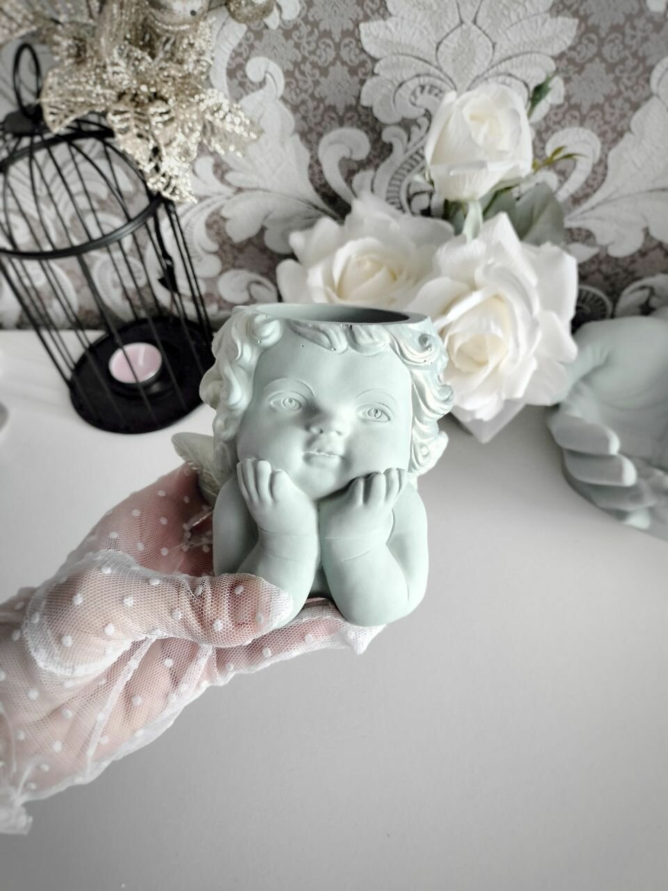 СохранитьКашпо Ангел для сухоцветов, органайзер для ватных палочек, зеленый интересное: