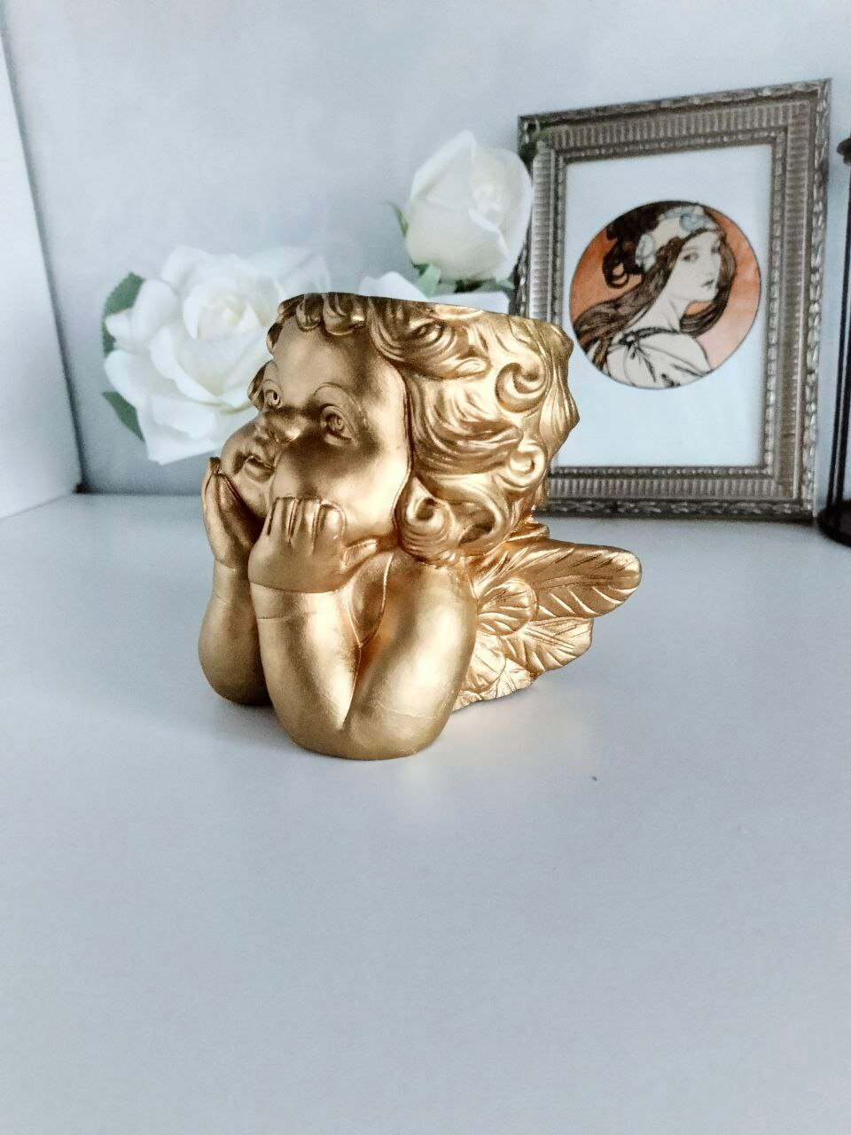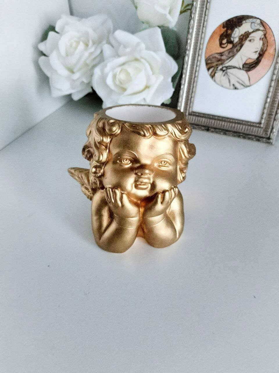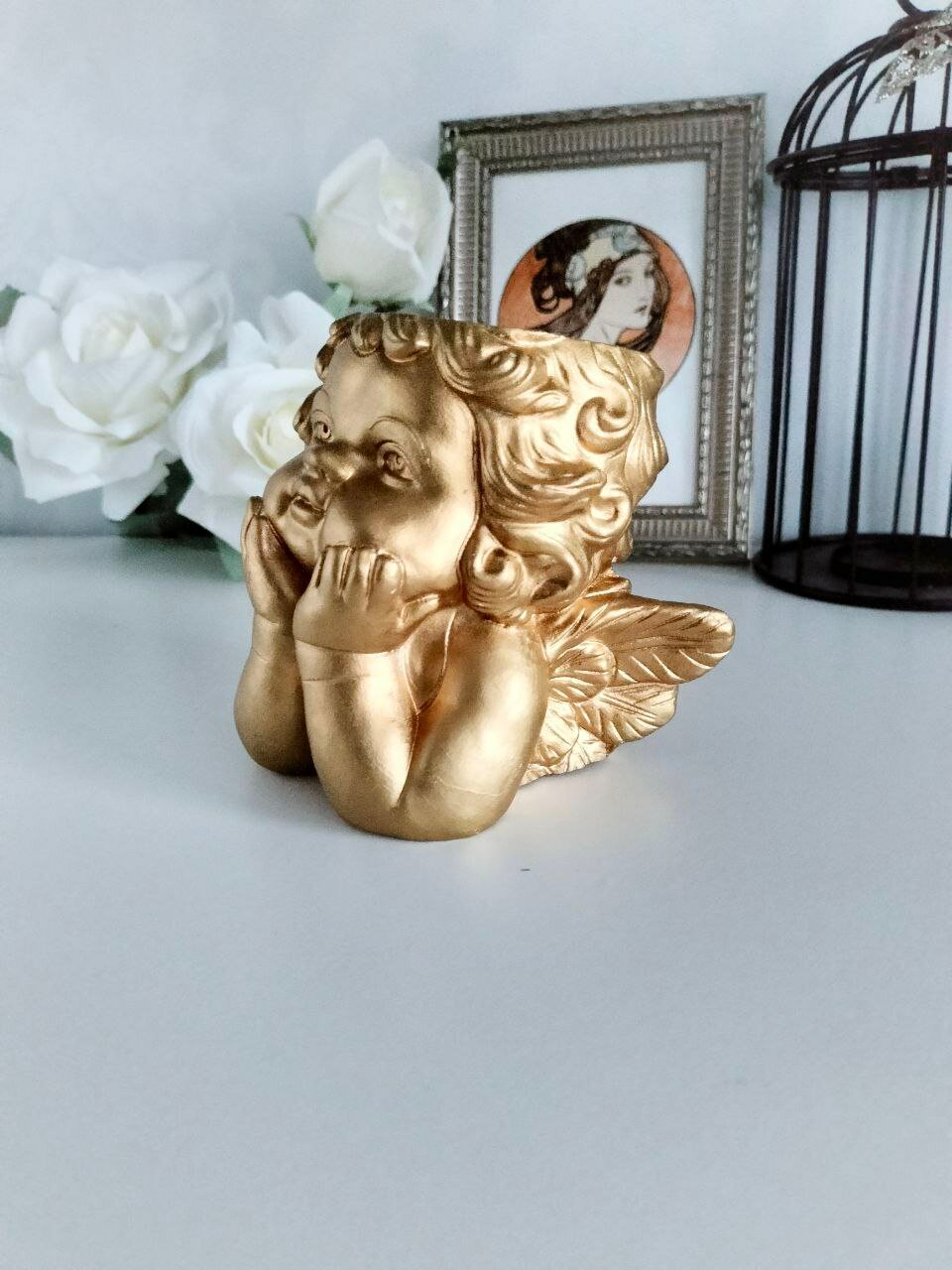 Купить Кашпо Ангел для сухоцветов, органайзер для ватных палочек, золотой