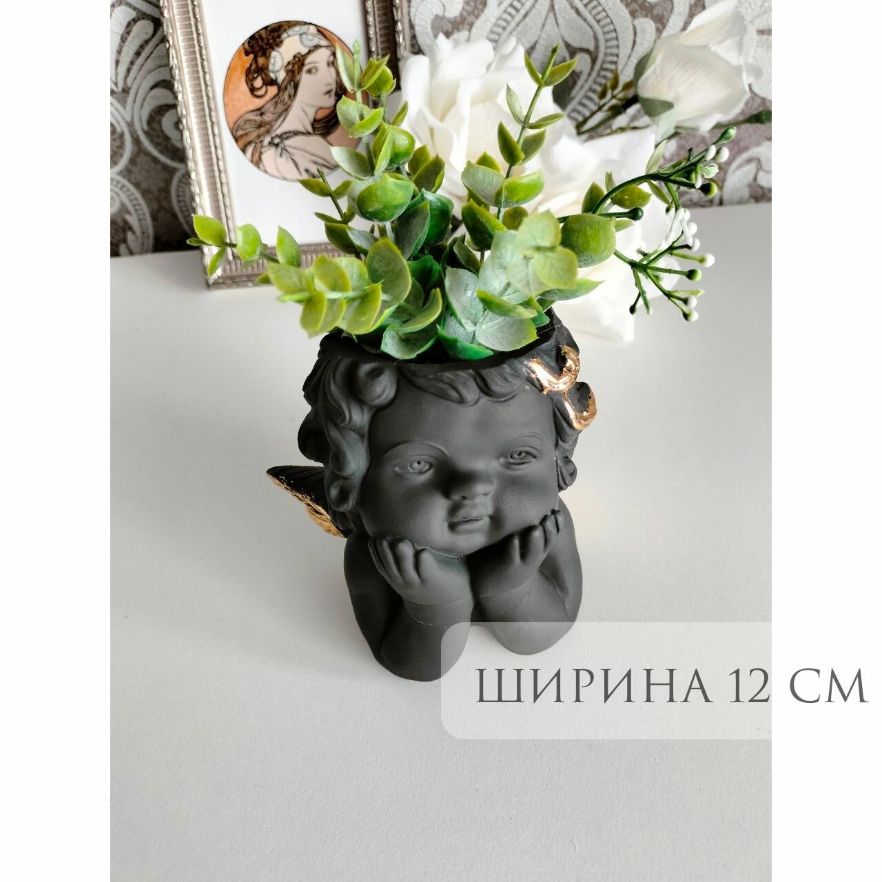 Купить Кашпо Ангел для сухоцветов, органайзер для ватных палочек, черный с золотом