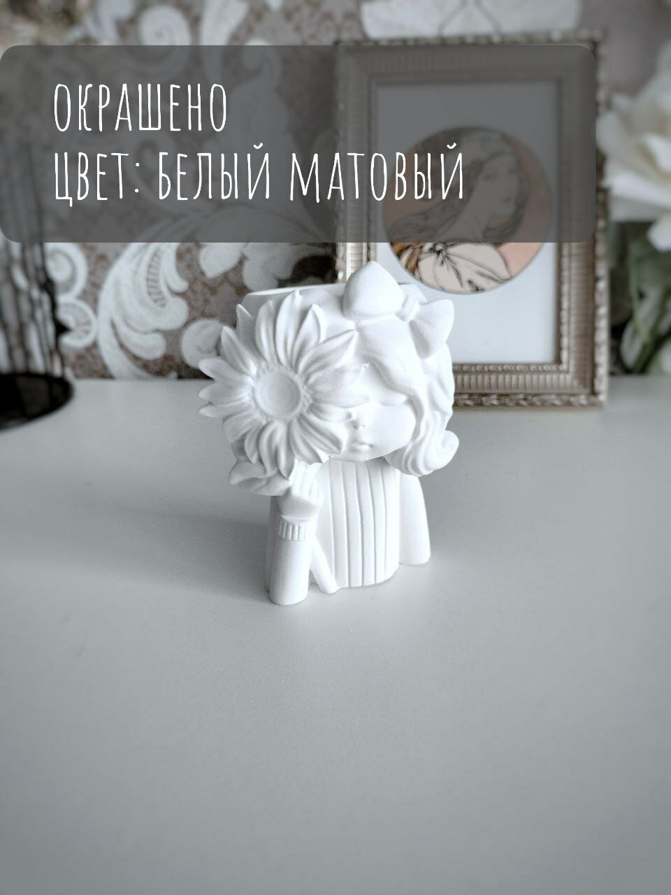 СохранитьМаленькое кашпо Девочка с цветком, белый интересное: