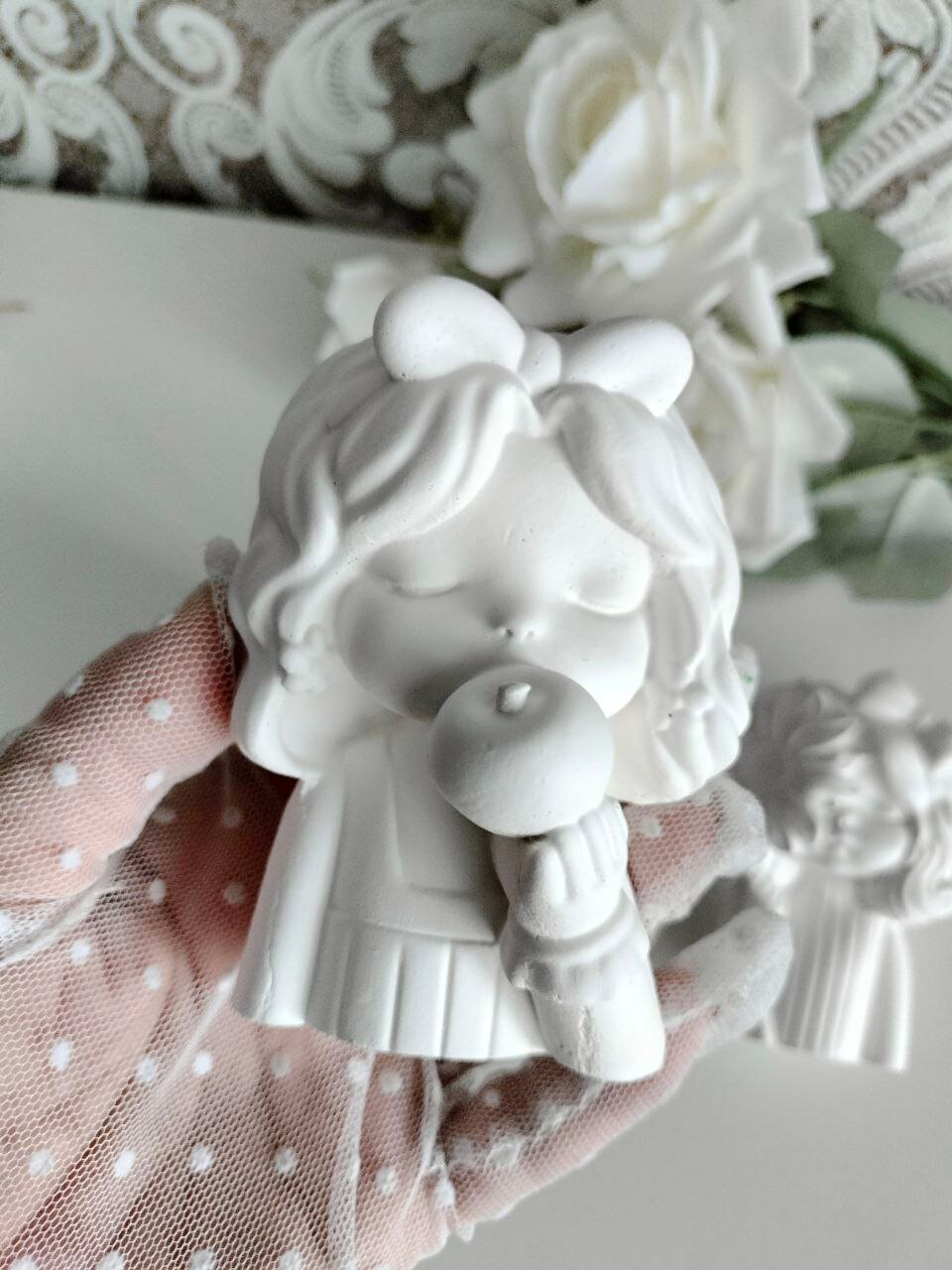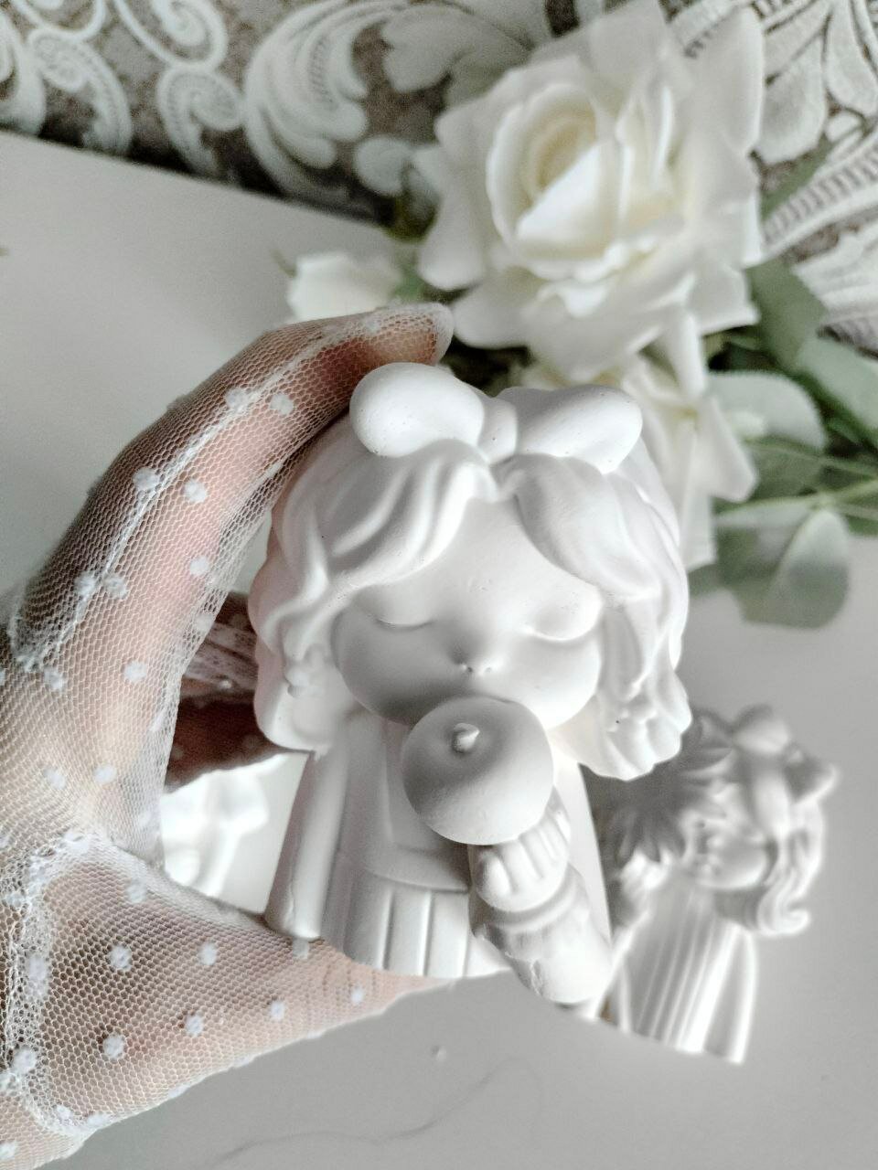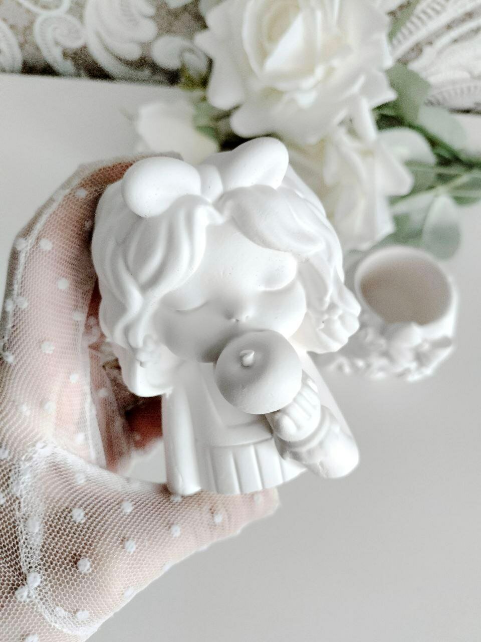Маленькое кашпо Девочка с цветком, белый