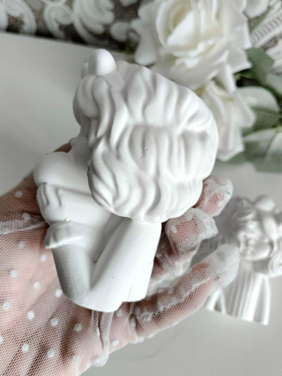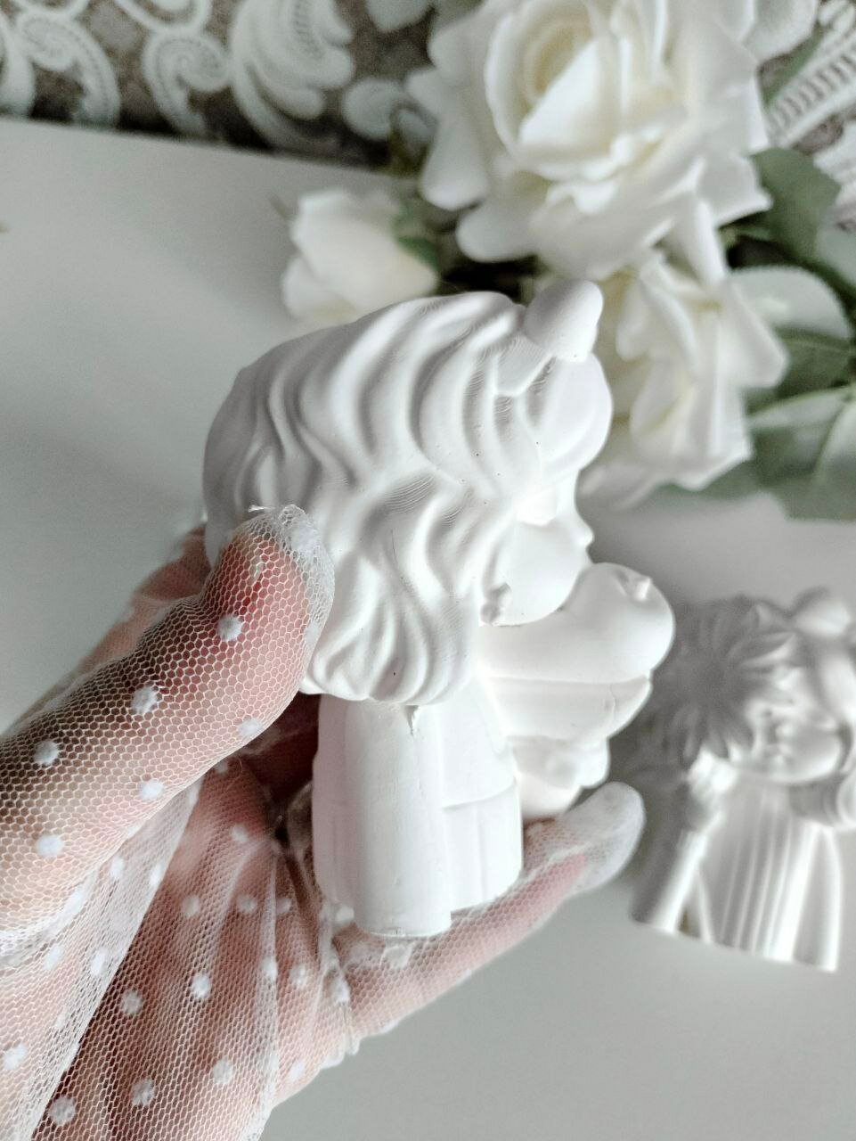 Кашпо Ангел для сухоцветов, органайзер для ватных палочек, белый с золотом