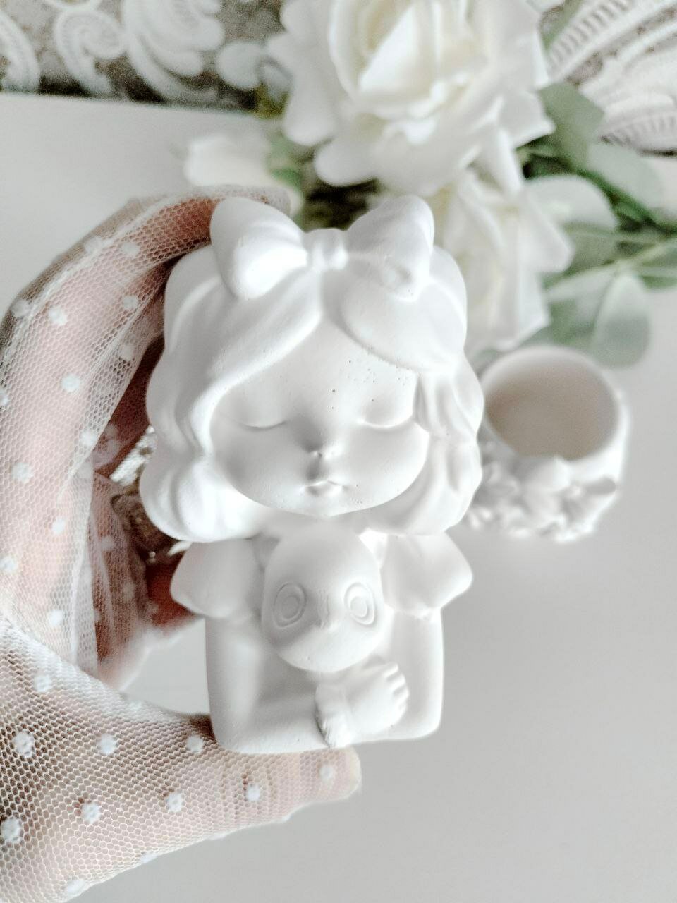 Купить Маленькое кашпо Девочка с мишкой, белый
