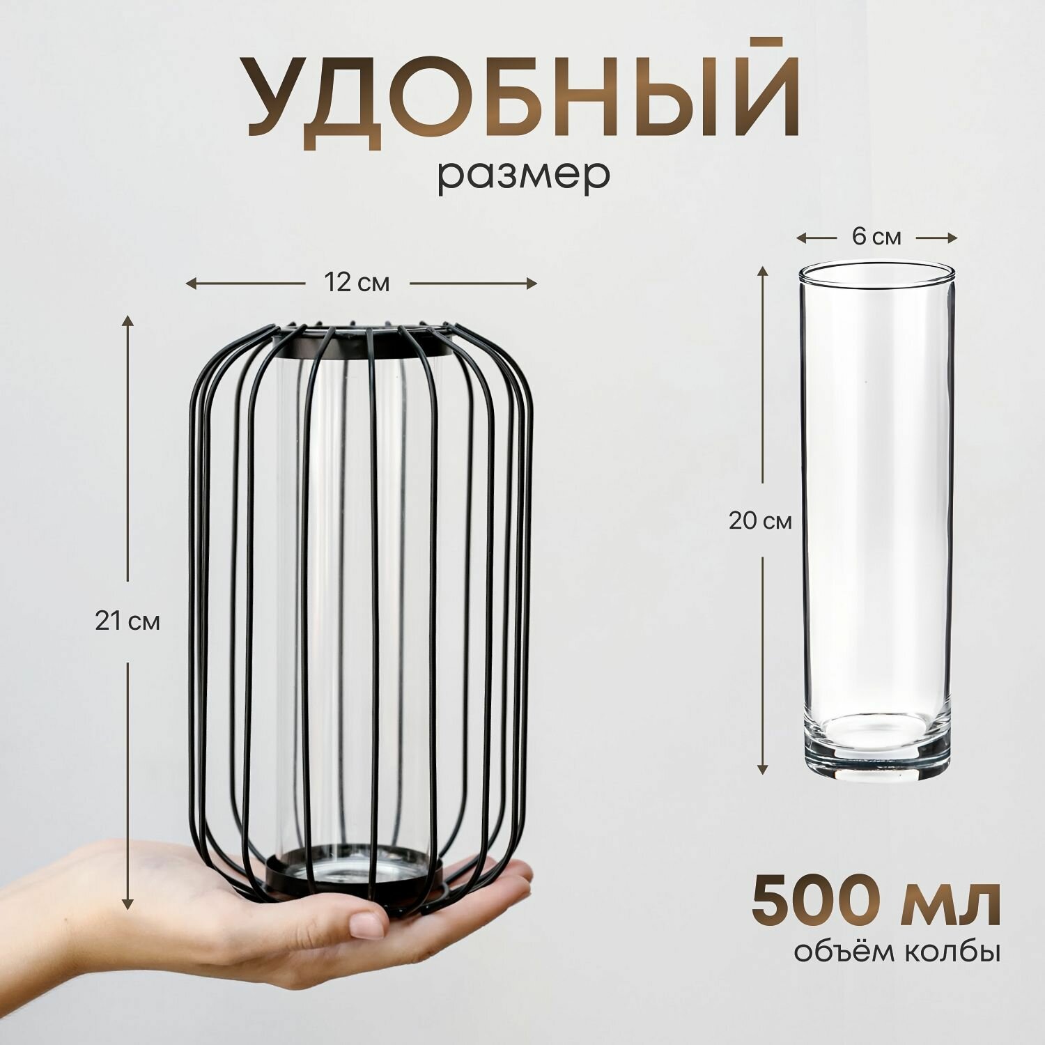 Большая ваза для цветов и сухоцветов, ваза с колбой, черная, MIME интересное: