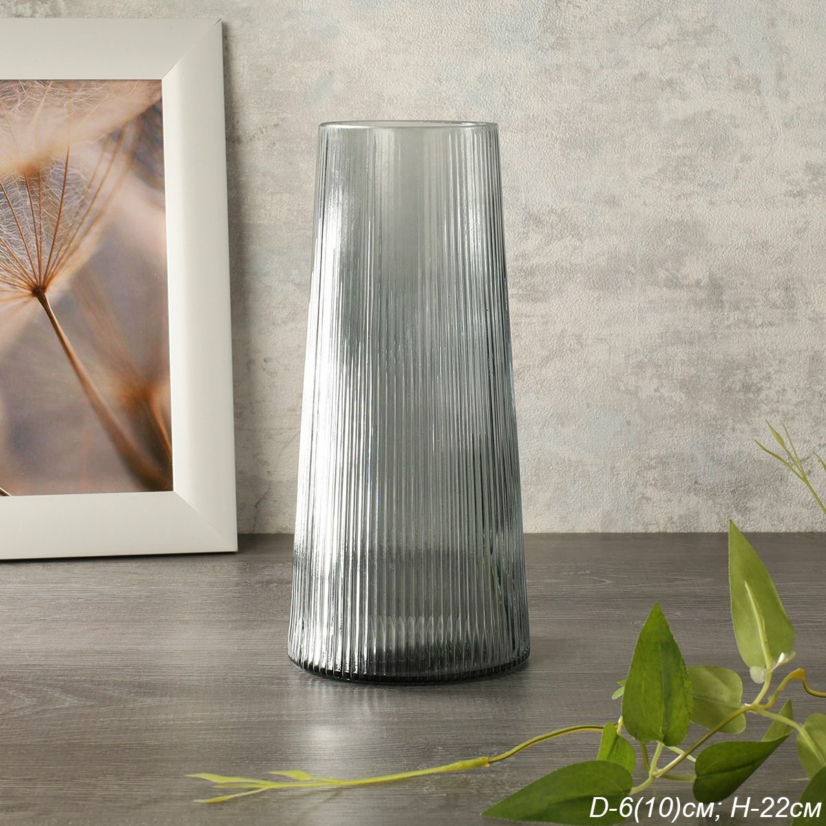 Ваза стеклянная для цветов 22х10х6 см серая с золотой каймой интересное: