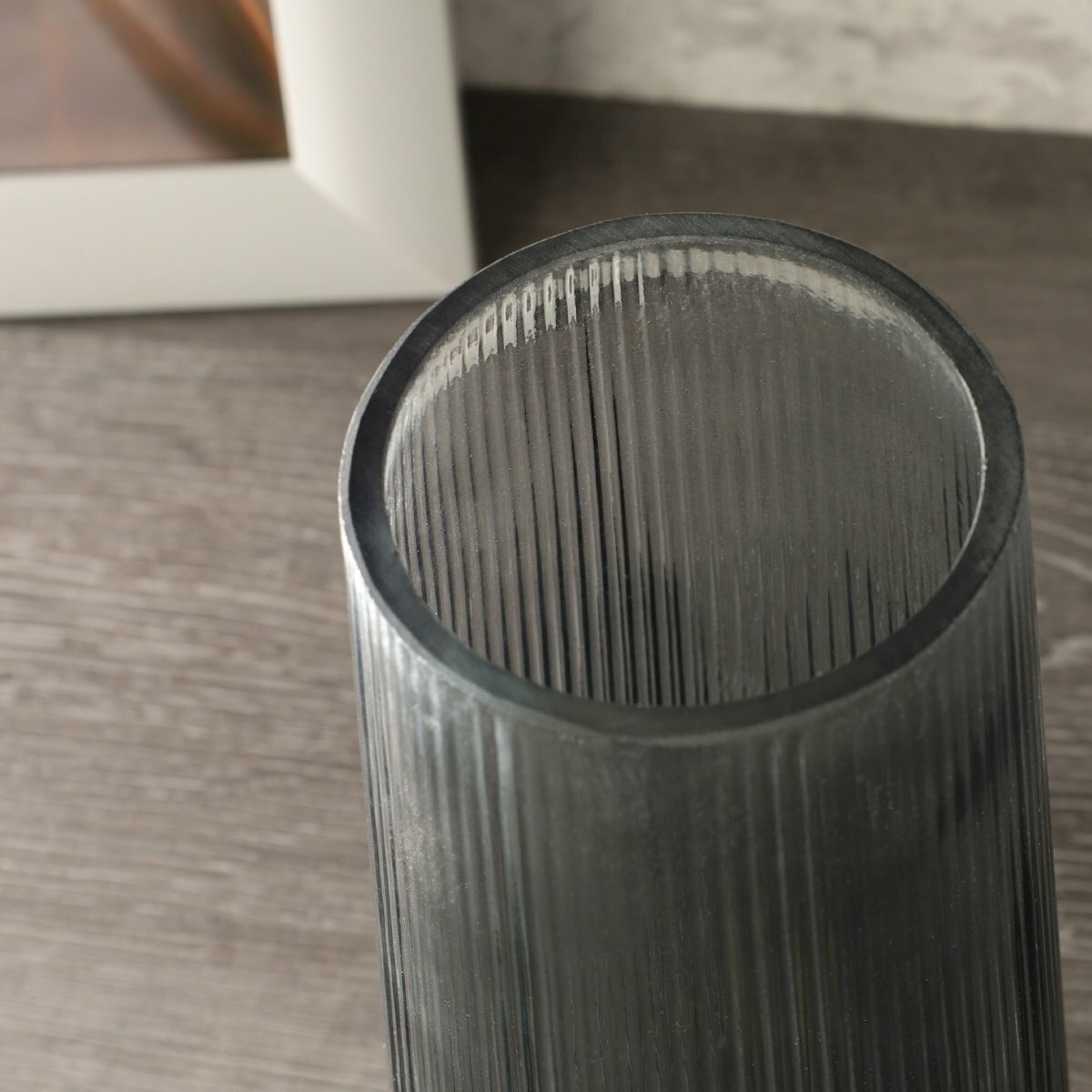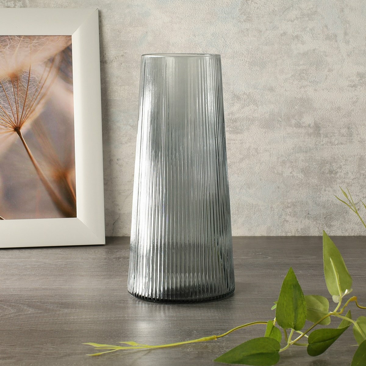Купить Ваза стеклянная для цветов 22х10х6 см серая с золотой каймой