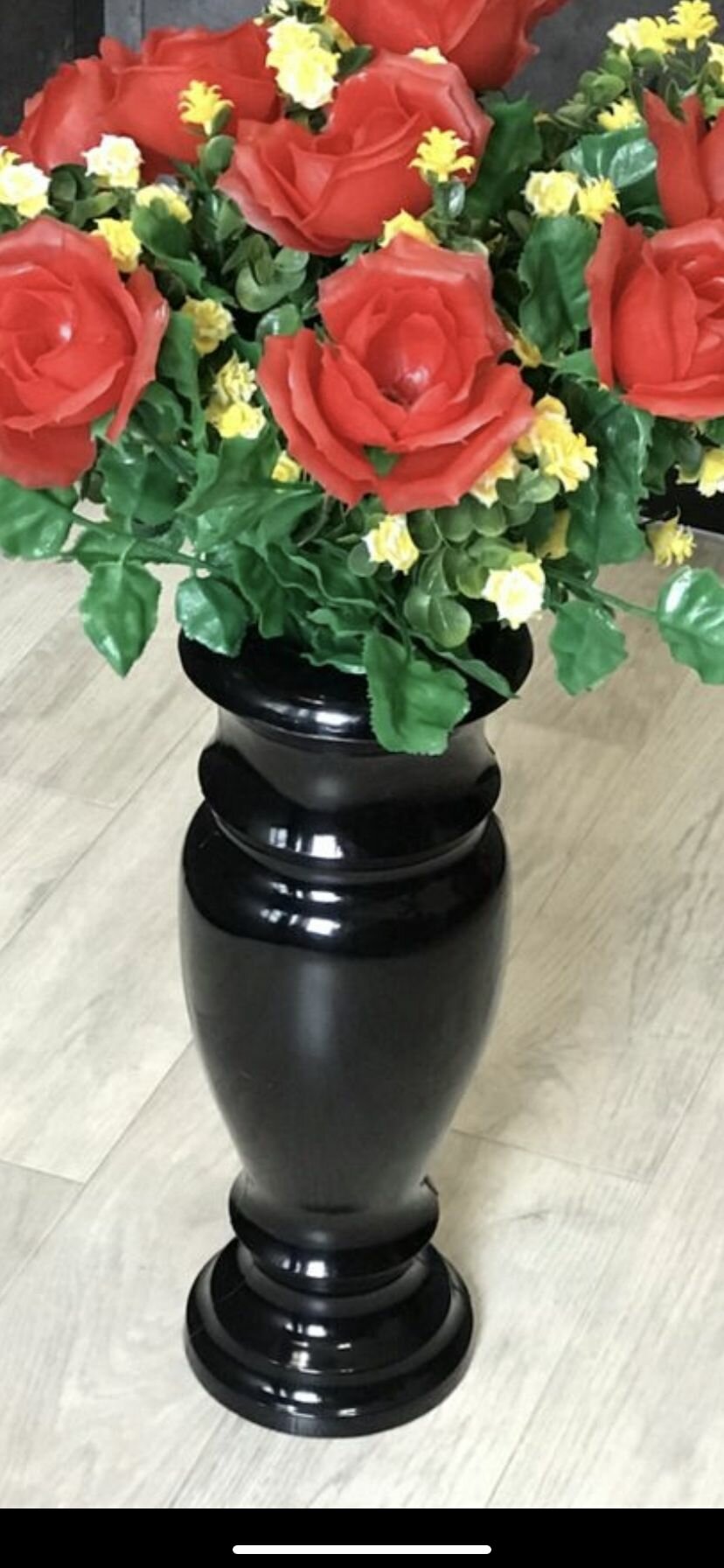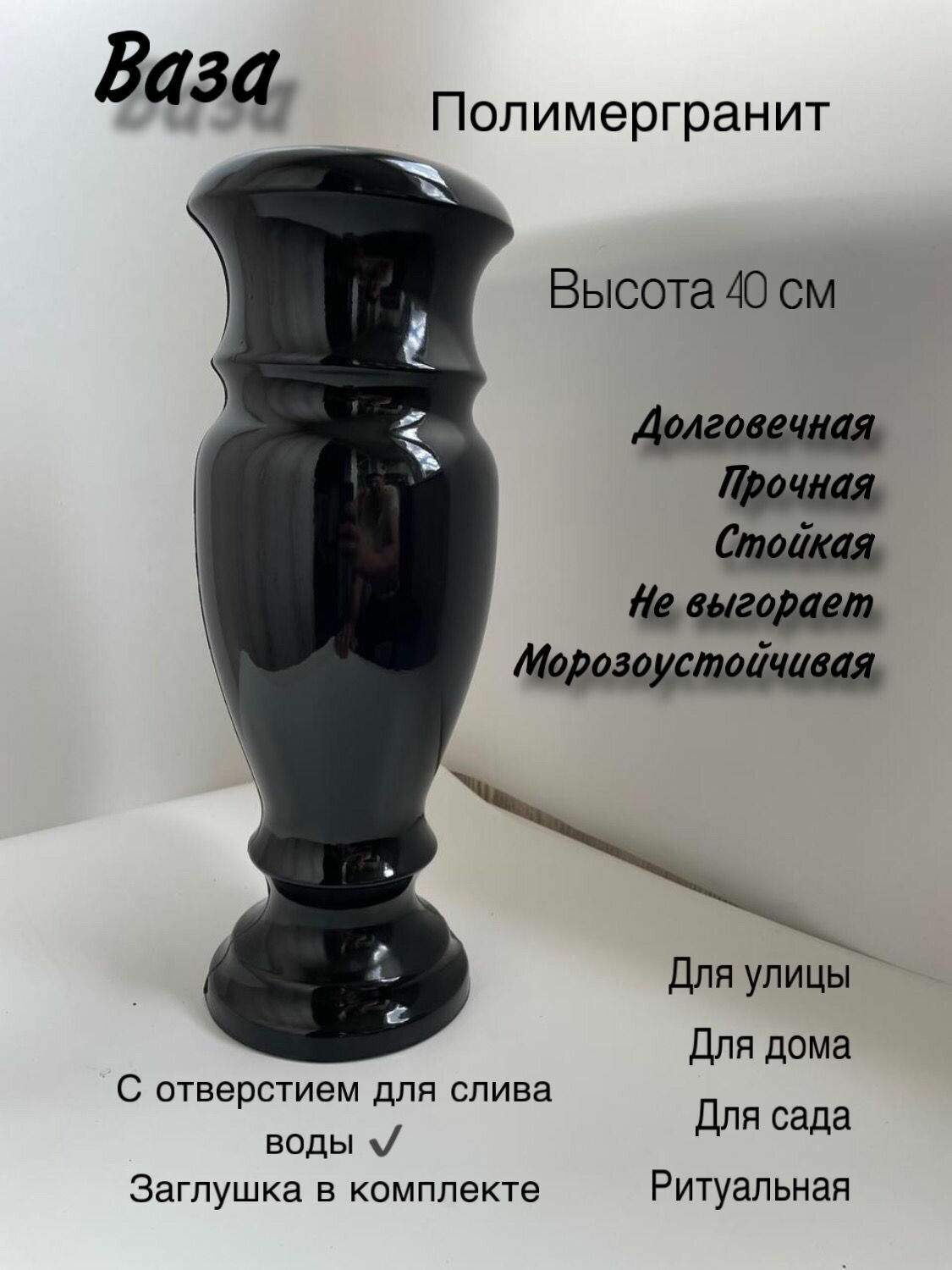 Ваза с отверстием из полимергранита 40см для цветов черная глянец интересное: