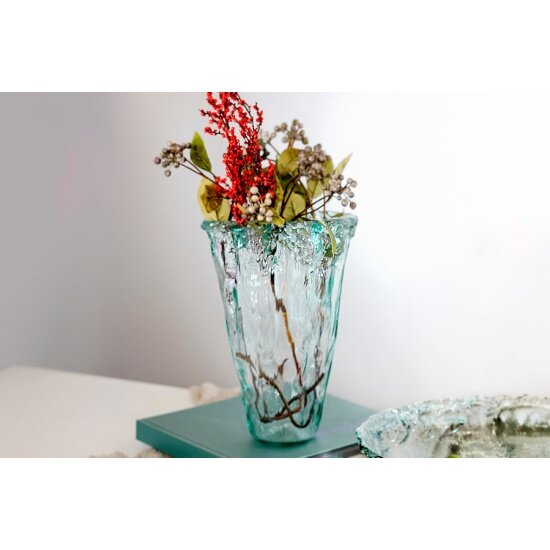 Ваза для цветов, 30 см, стекло, мятый эффект, Pandora