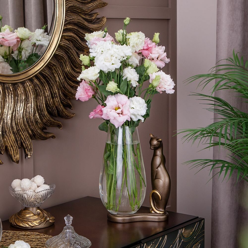СохранитьПрозрачная настольная ваза Bogacho Кошка Шелби из стекла на декоративной ножке для букетов, высоких цветов и сухоцветов интересное: