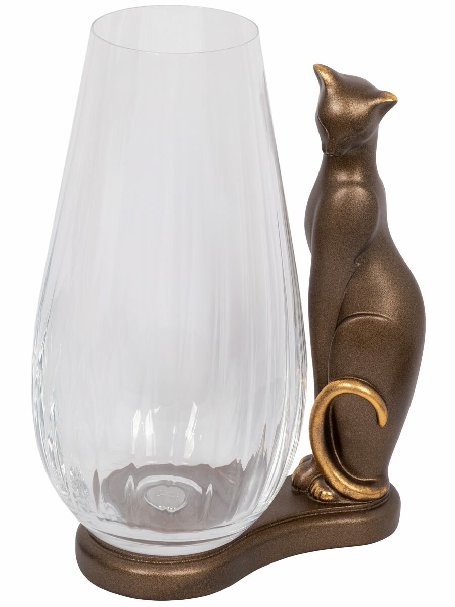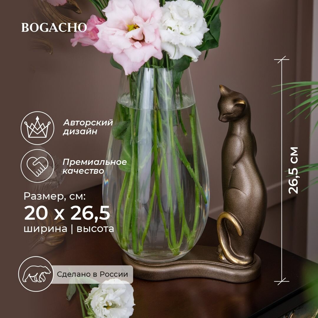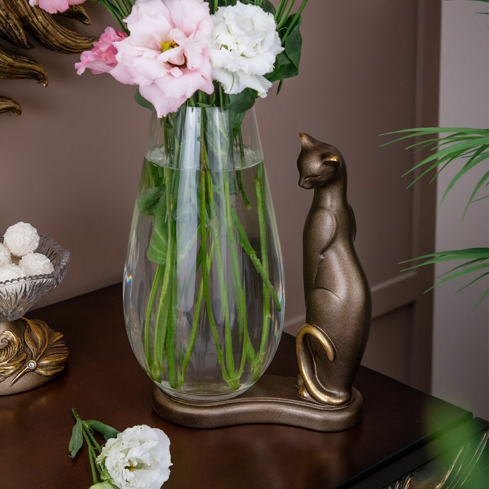 Купить Прозрачная настольная ваза Bogacho Кошка Шелби из стекла на декоративной ножке для букетов, высоких цветов и сухоцветов