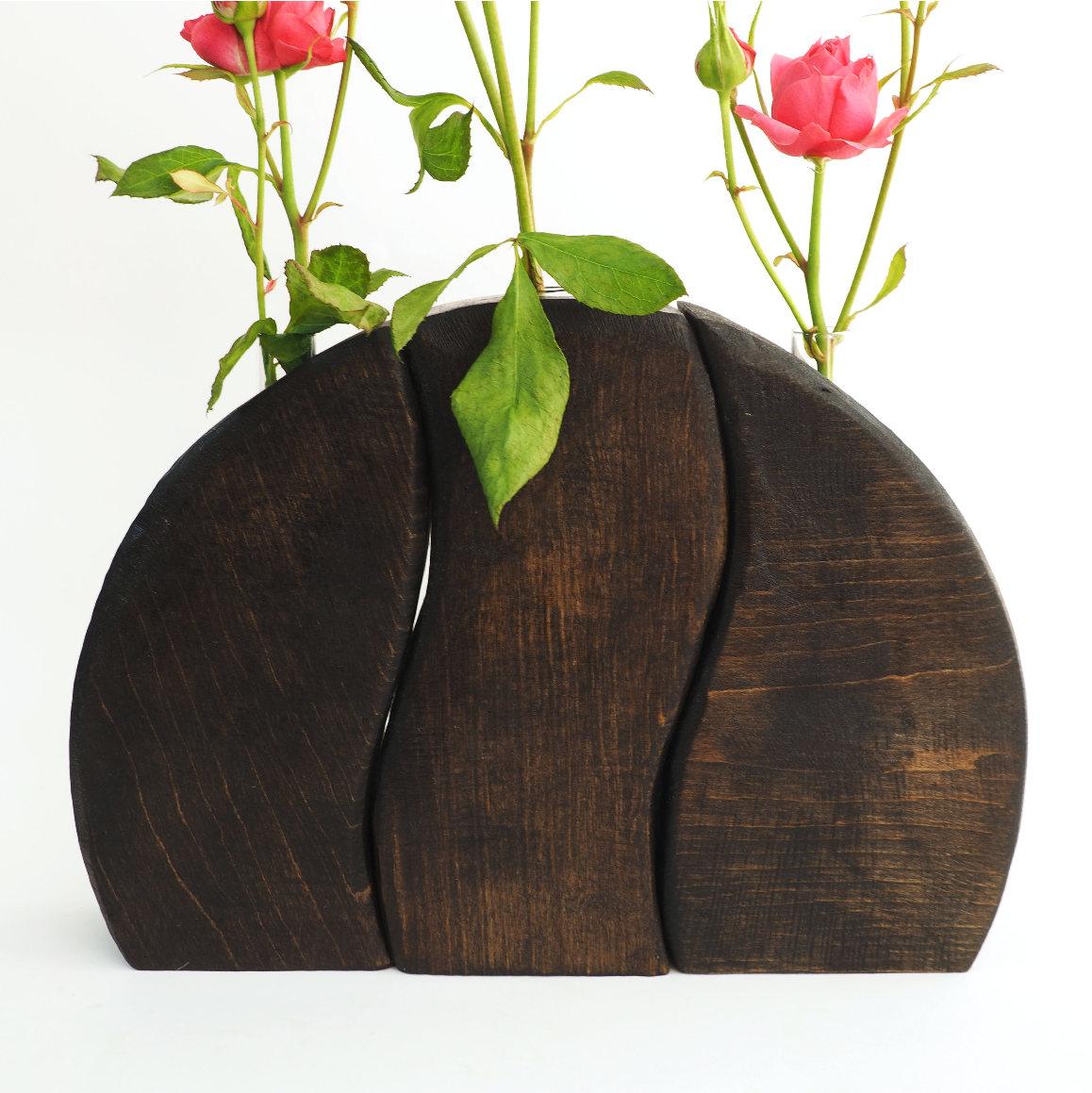 Купить Деревянные вазы со стеклянными колбами для живых цветов и сухоцветов