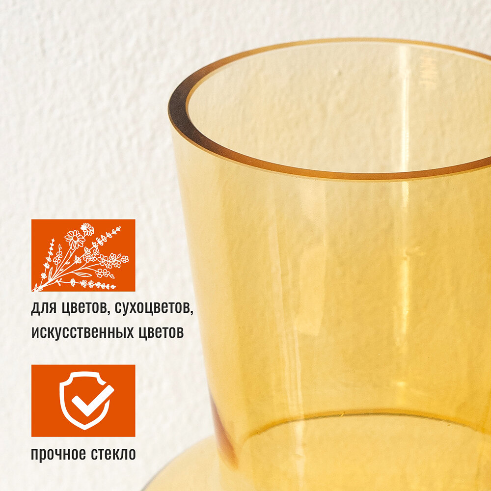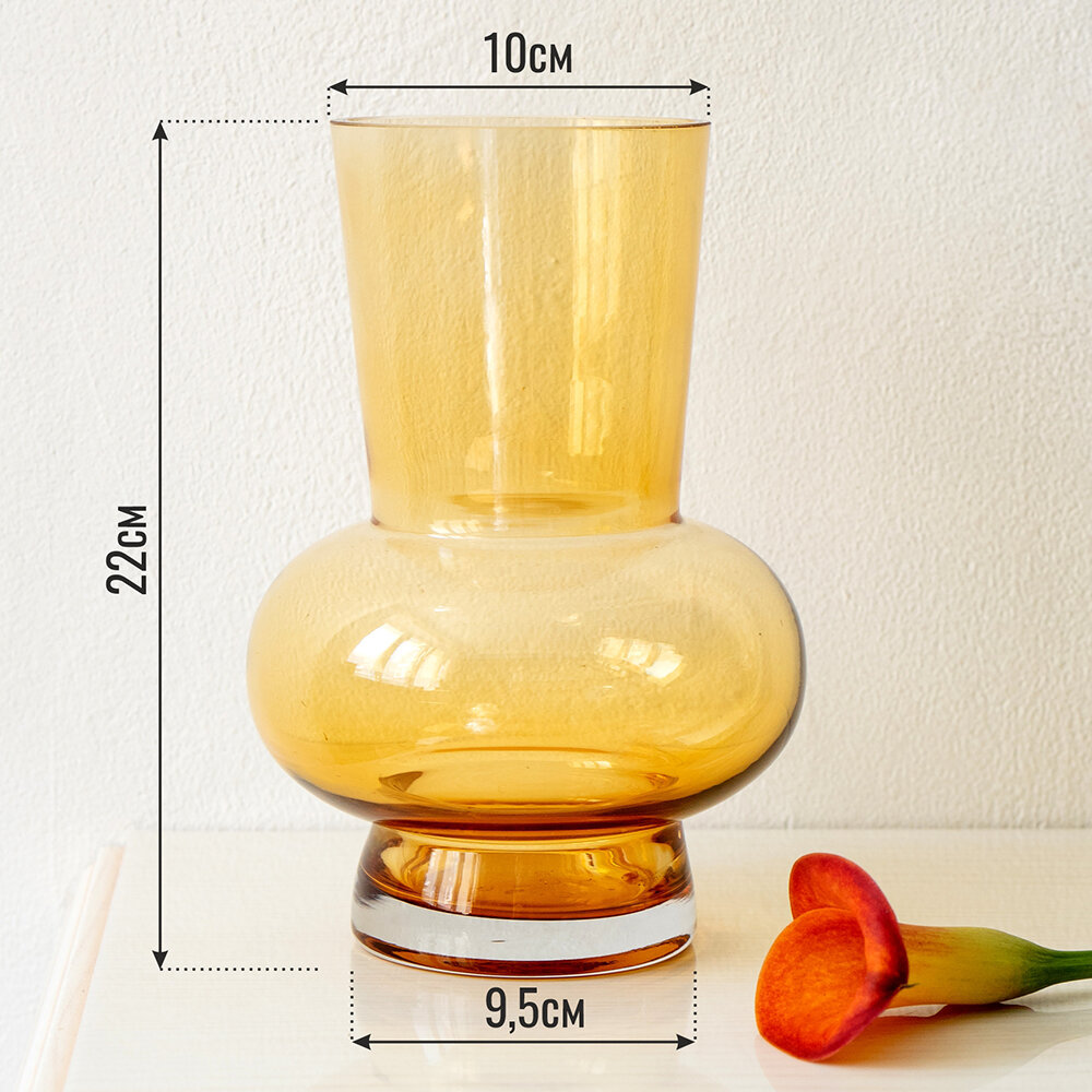 Купить Ваза интерьерная для цветов и сухоцветов 22см из прозрачного стекла коричневого цвета
