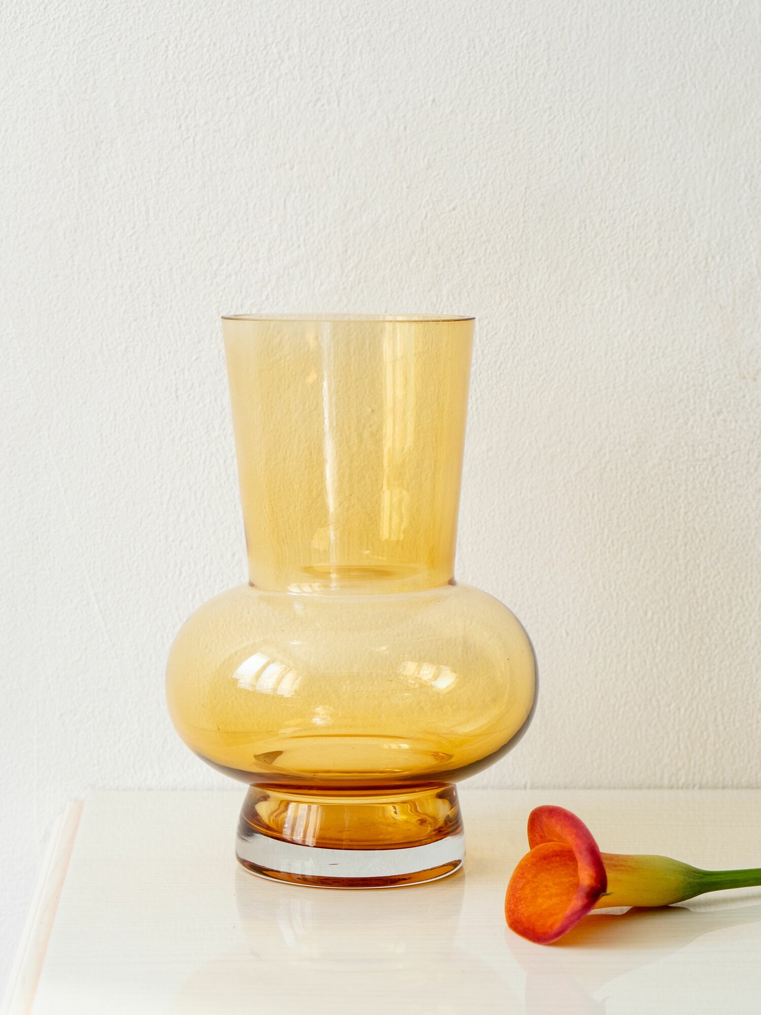 Ваза интерьерная для цветов и сухоцветов 29,5см из прозрачного стекла бежевого цвета