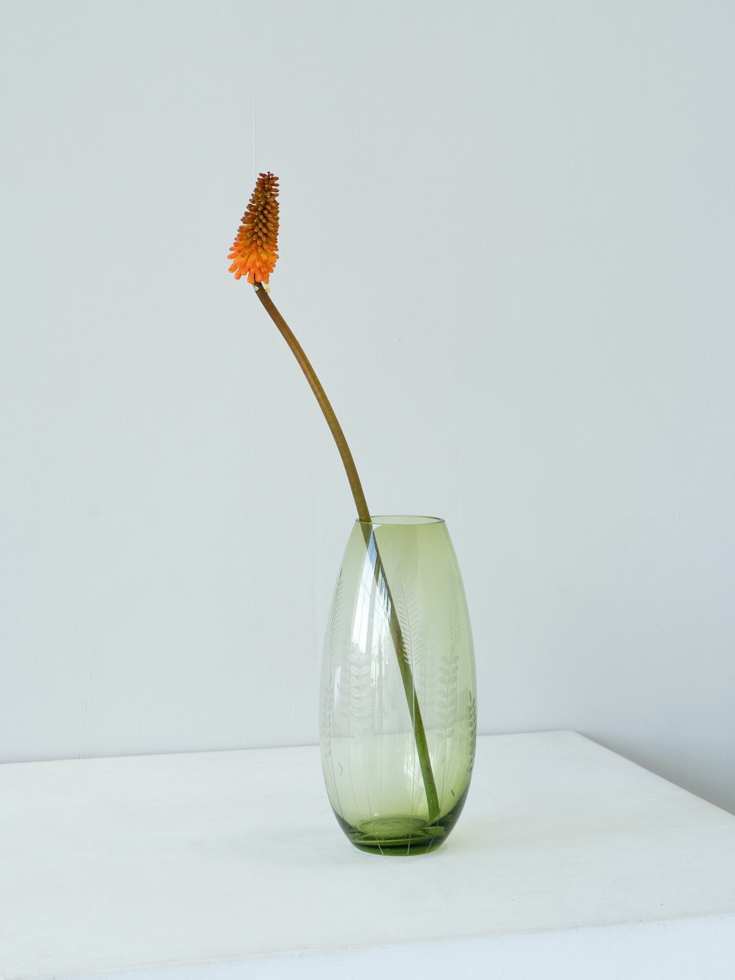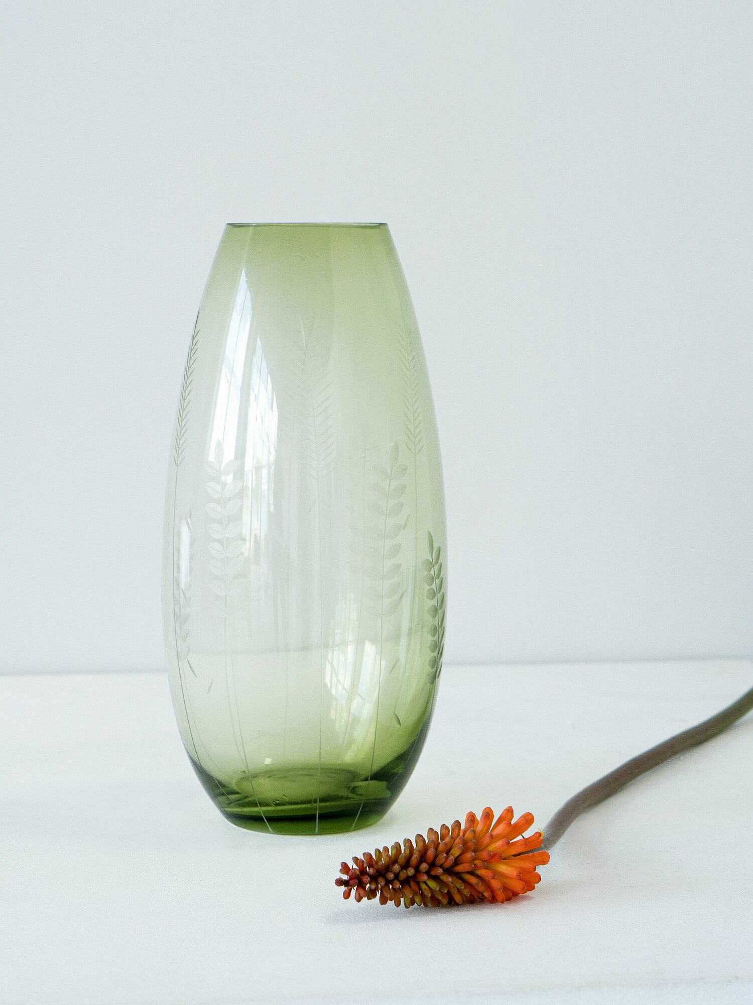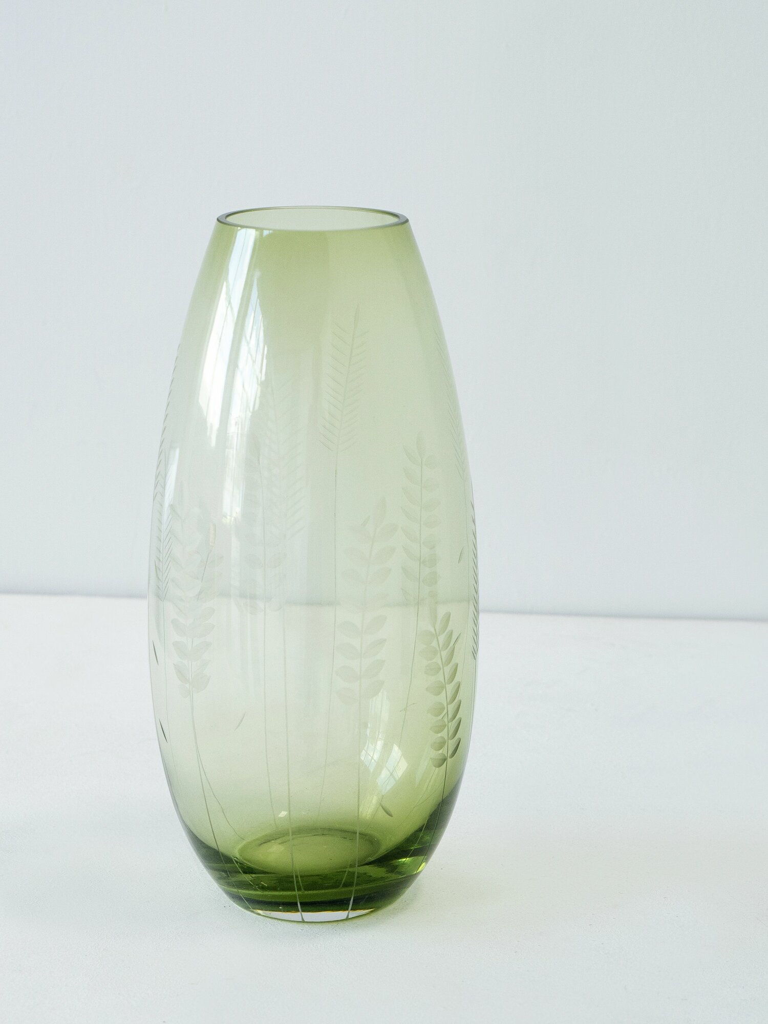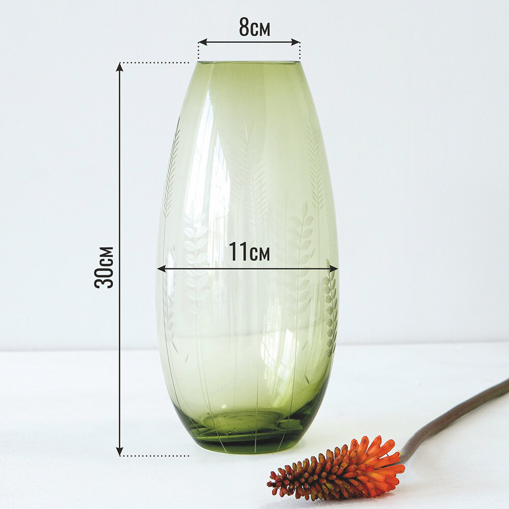 Купить Ваза интерьерная для цветов и сухоцветов 30см из прозрачного стекла зеленого цвета