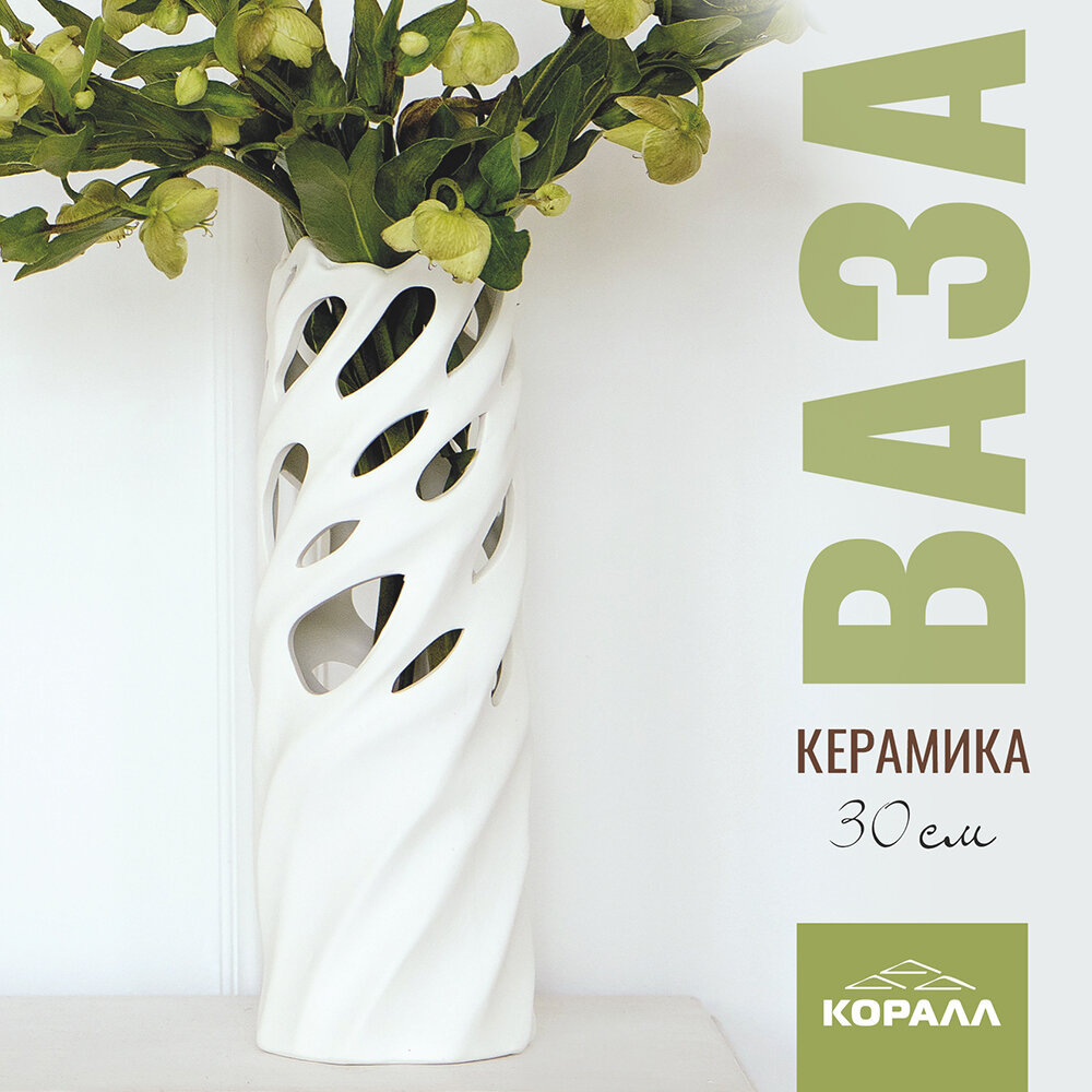 СохранитьВаза интерьерная для сухоцветов 30см керамическая белого цвета с фактурным матовым покрытием интересное: