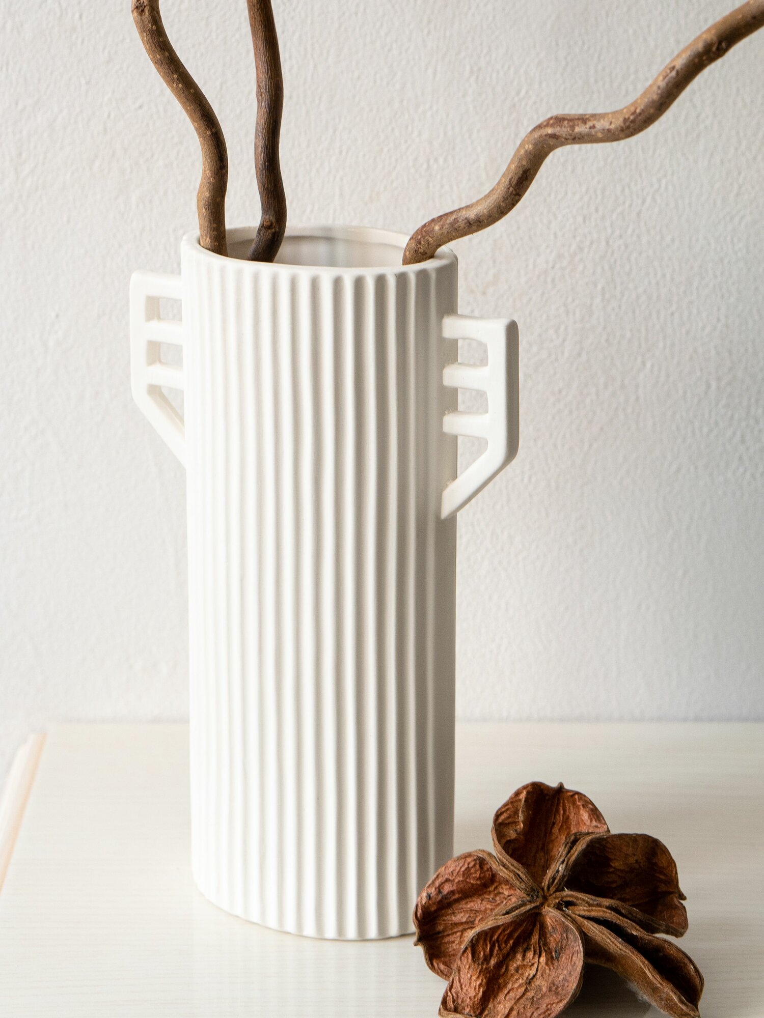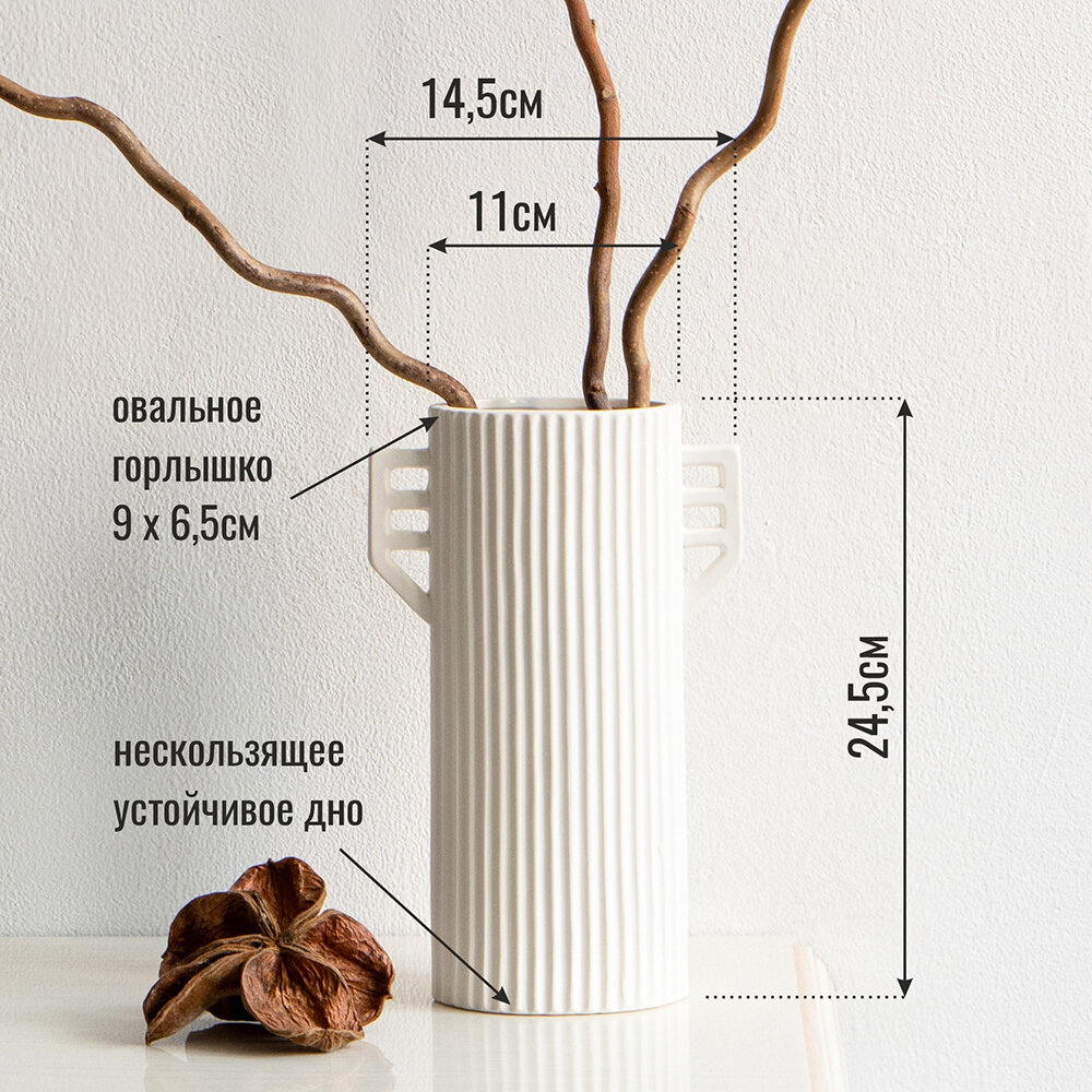 Ваза интерьерная для сухоцветов 30см керамическая белого цвета с фактурным матовым покрытием