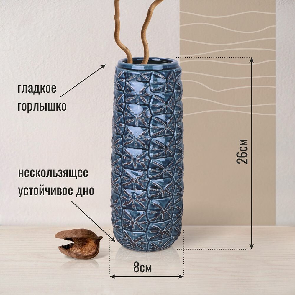 Ваза для цветов и сухоцветов интерьерная декоративная 31см