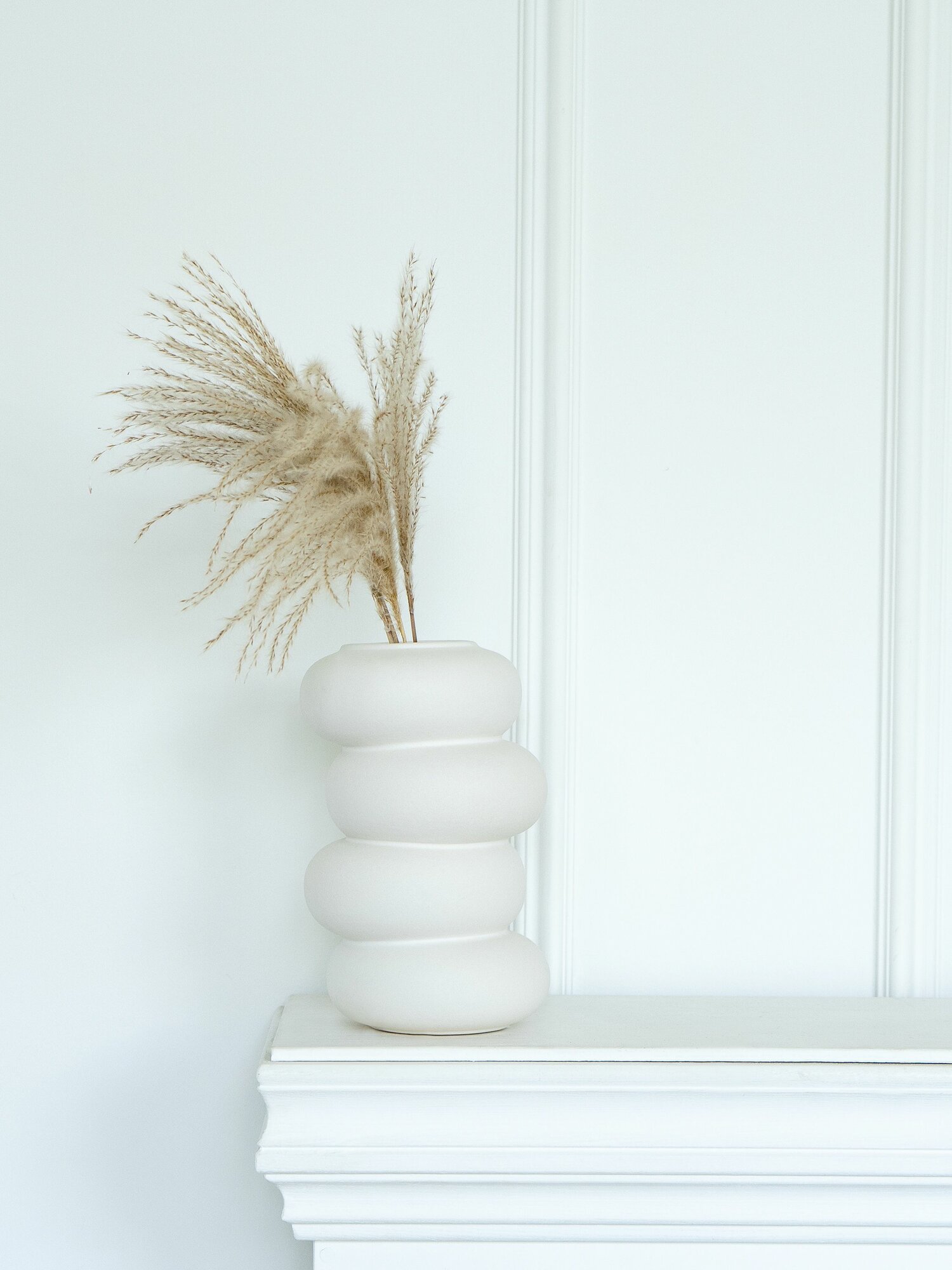 Ваза интерьерная для сухоцветов 30см керамическая белого цвета с фактурным матовым покрытием