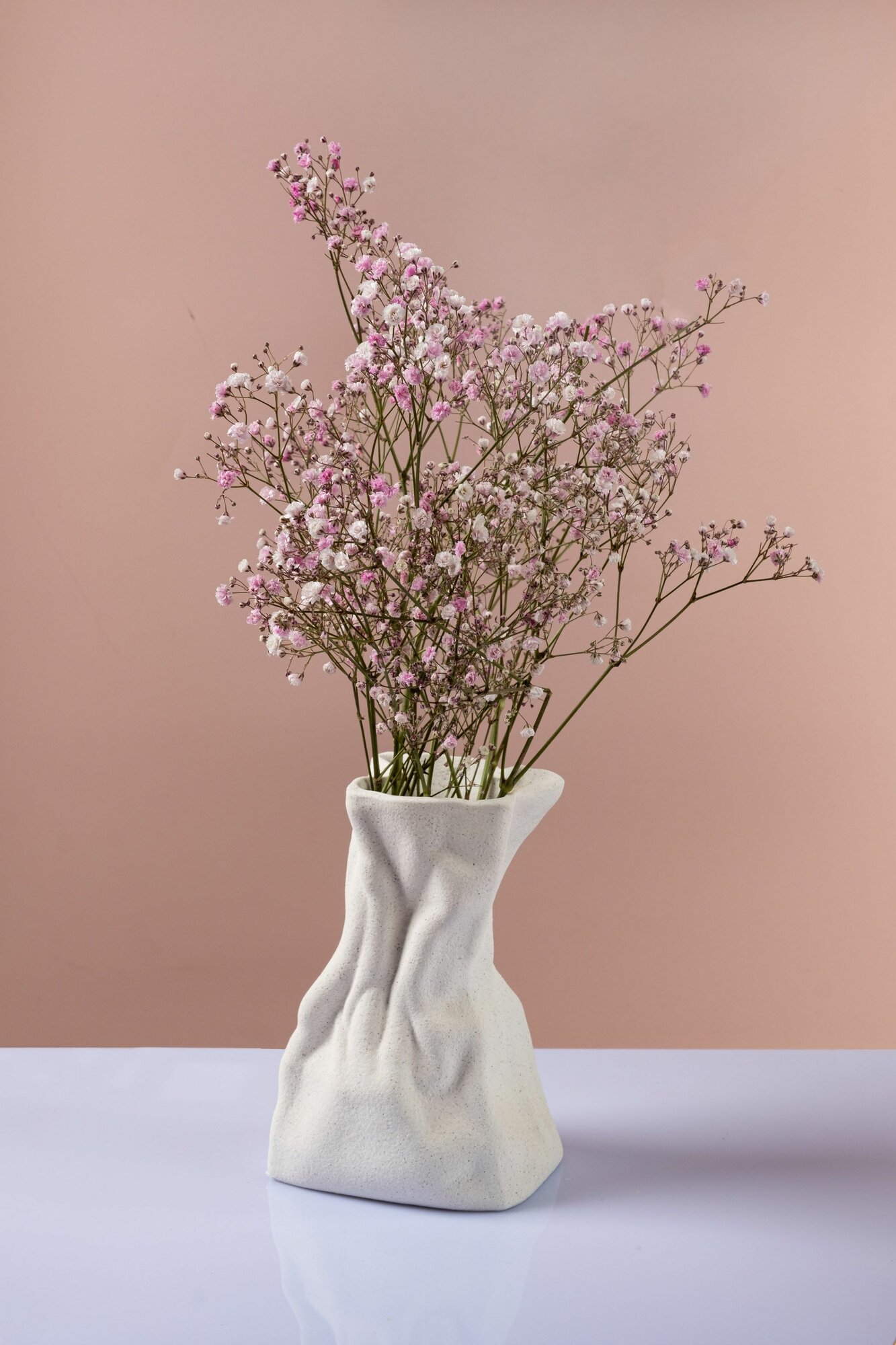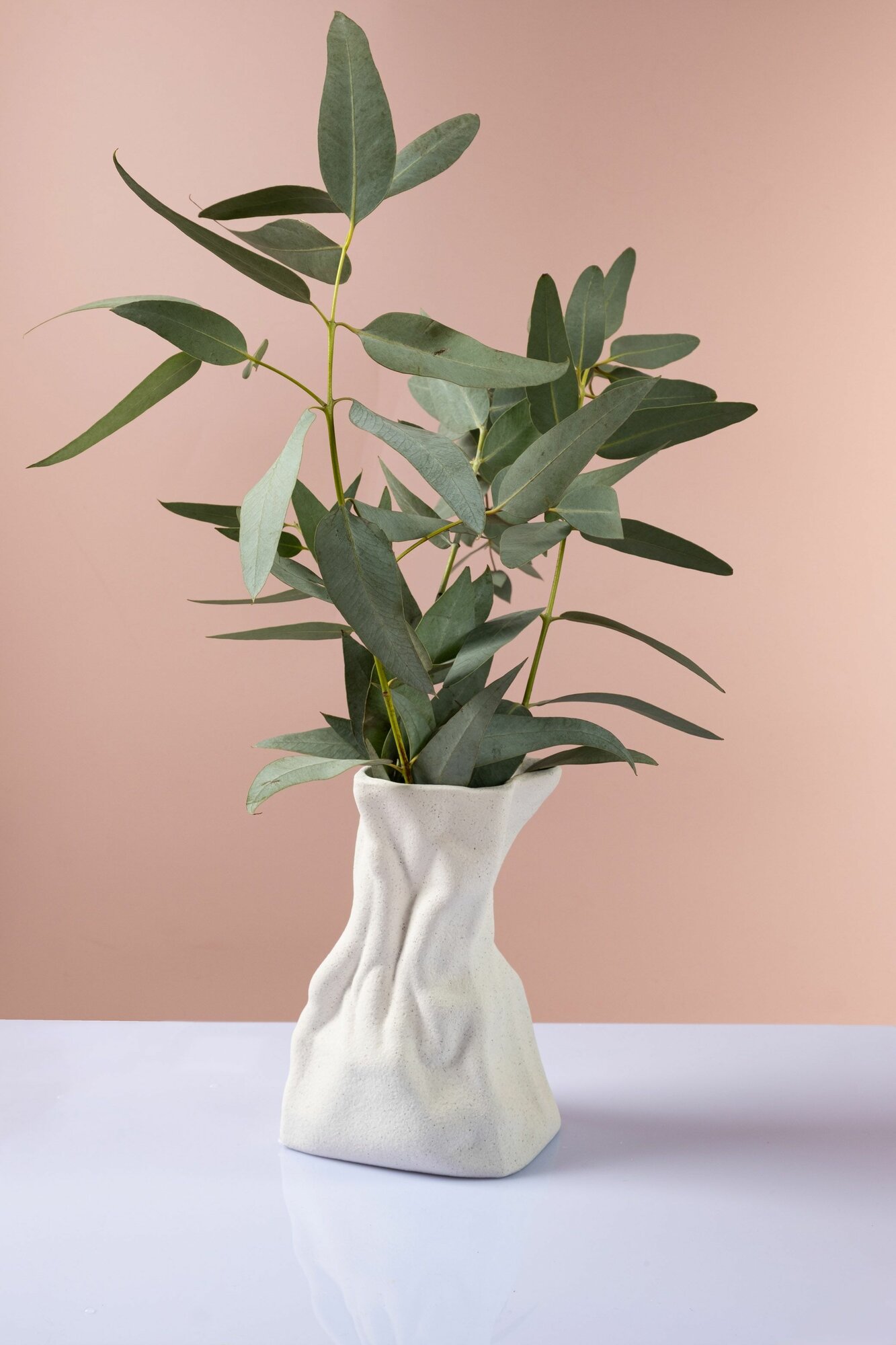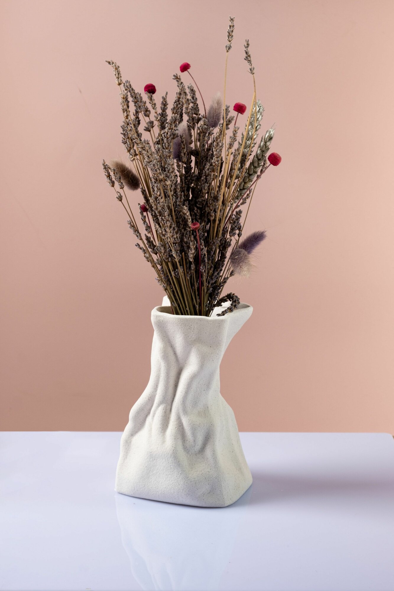 Ваза интерьерная декоративная из фарфора 23см, белая с фактурным матовым покрытием