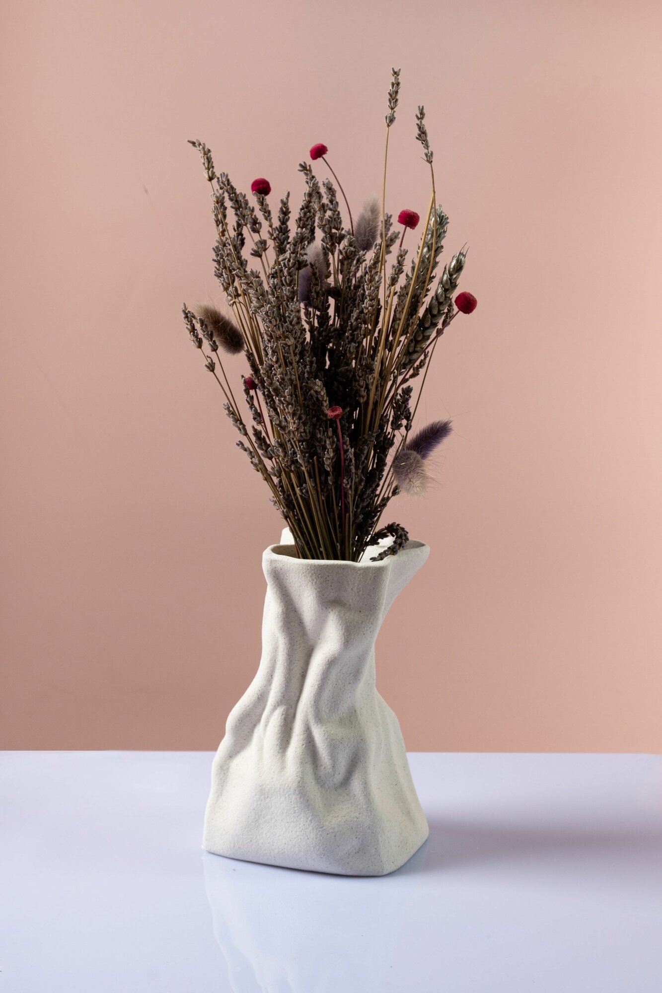 Ваза интерьерная декоративная для сухоцветов 25,5см цвет бежевый, керамика