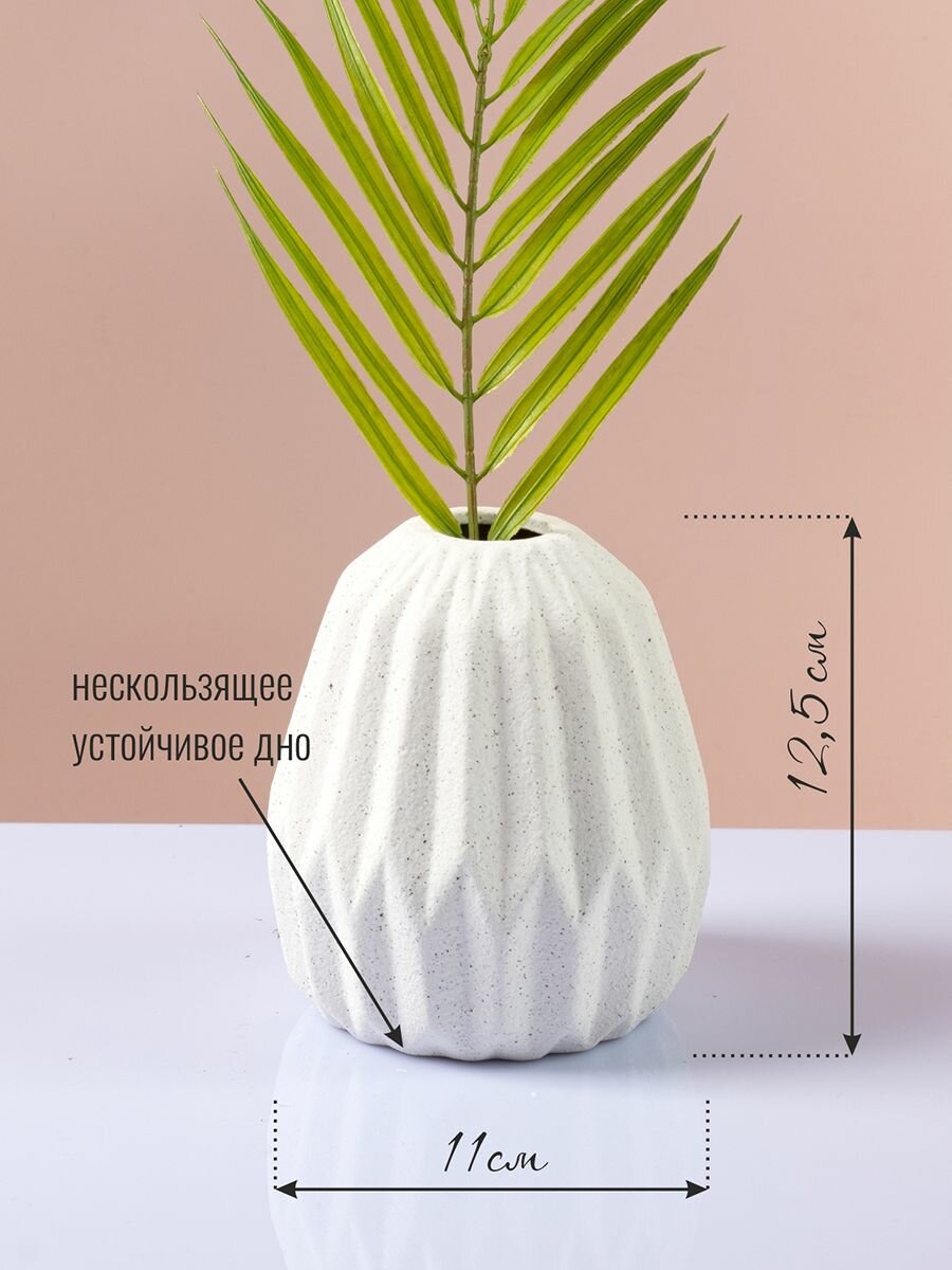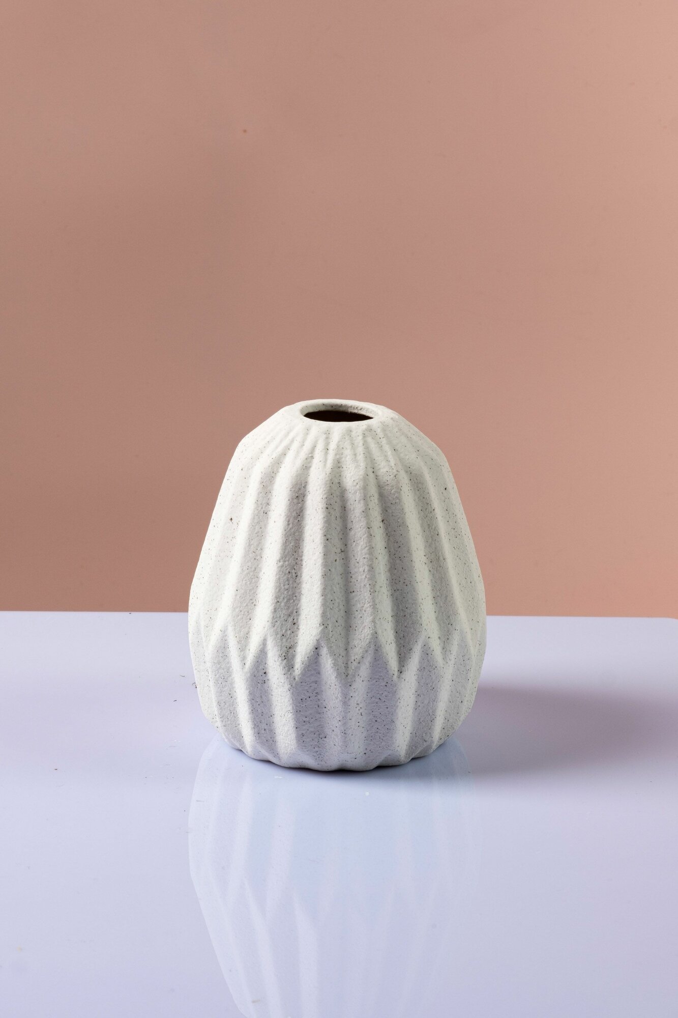 Ваза интерьерная декоративная из фарфора 15,5см, белая с фактурным матовым покрытием