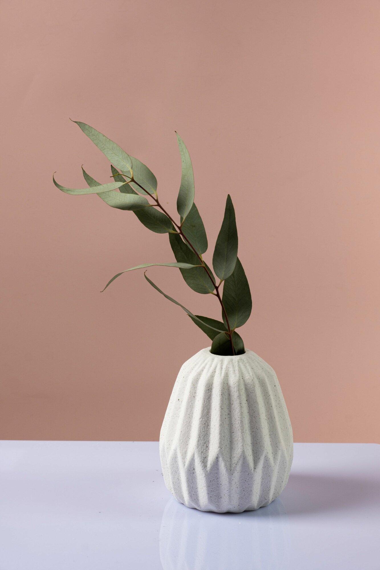 Ваза интерьерная декоративная из фарфора 18см, белая с фактурным матовым покрытием