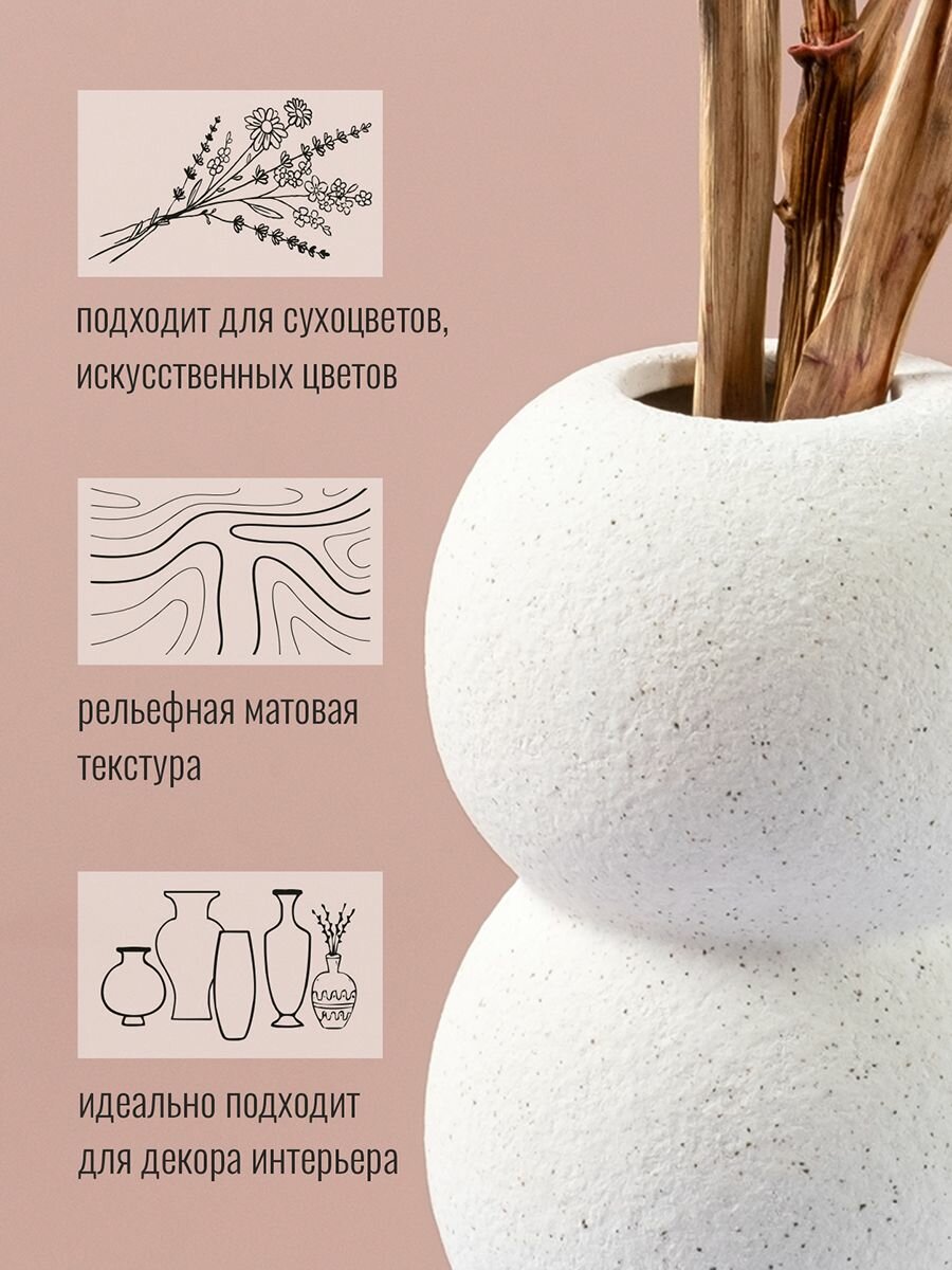 Ваза интерьерная декоративная керамическая 20,5 см белая для цветов и сухоцветов Коралл
