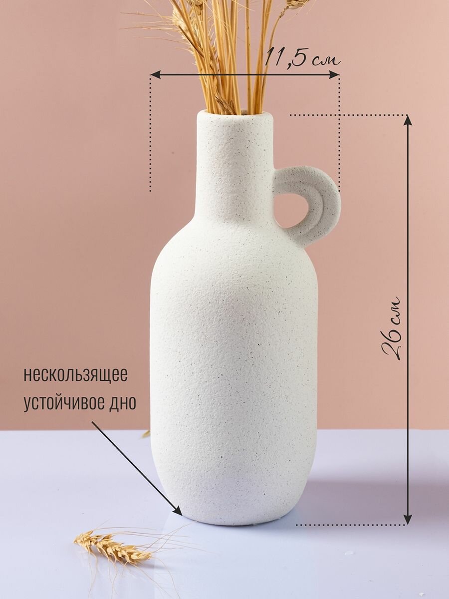 Ваза интерьерная декоративная для сухоцветов 25,5см цвет бежевый, керамика