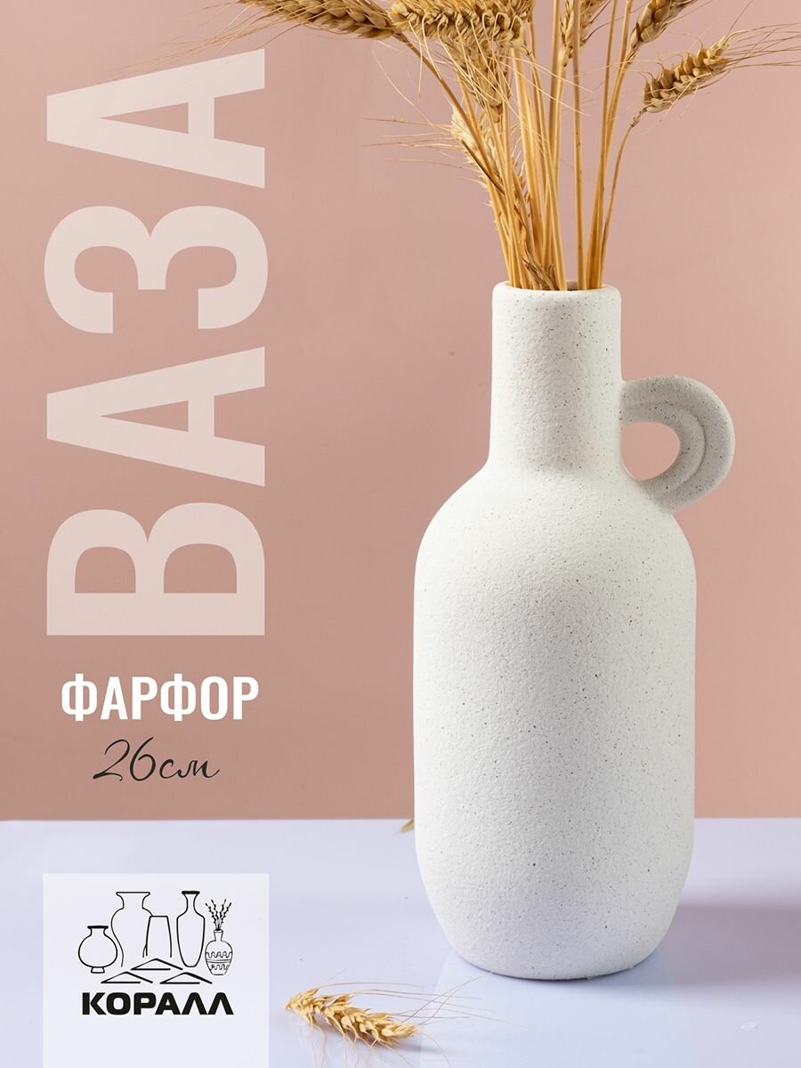 Ваза интерьерная декоративная из фарфора 26,5см, белая с фактурным матовым покрытием