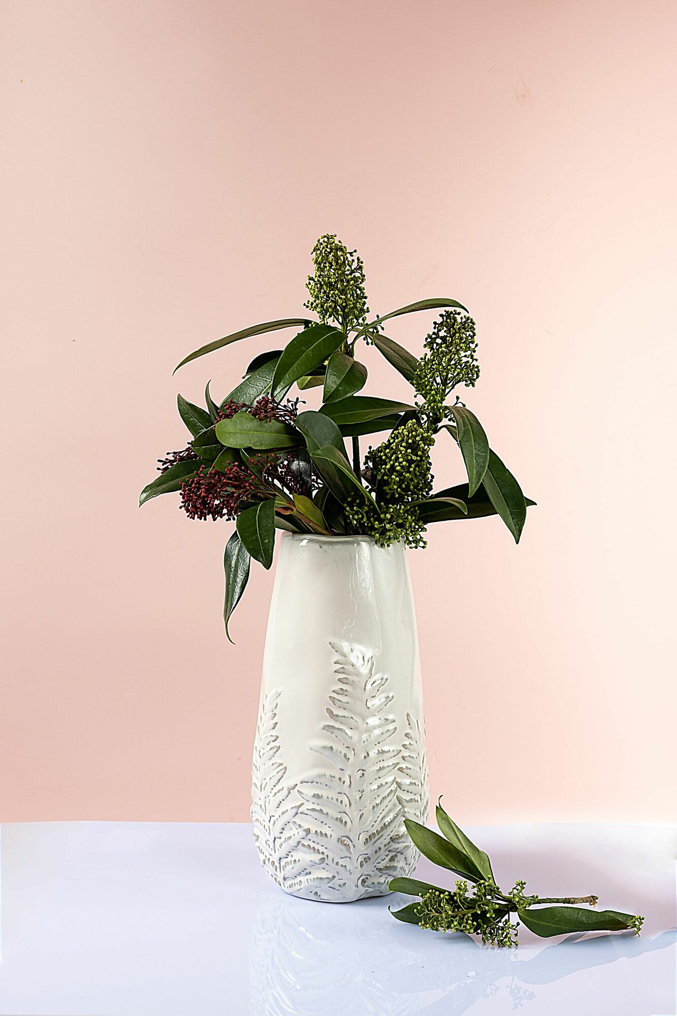 Ваза интерьерная декоративная керамическая 20,5 см белая для цветов и сухоцветов Коралл