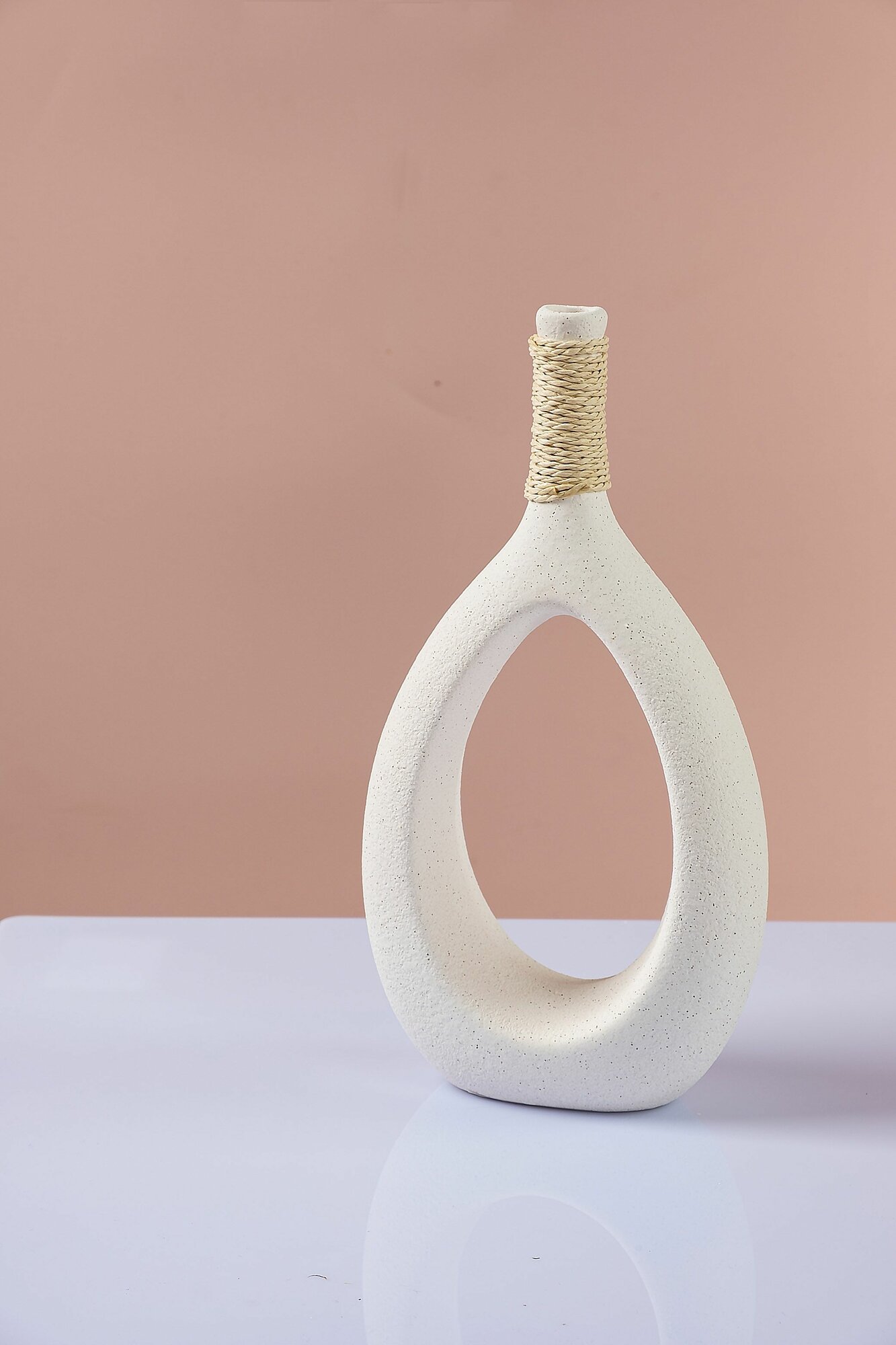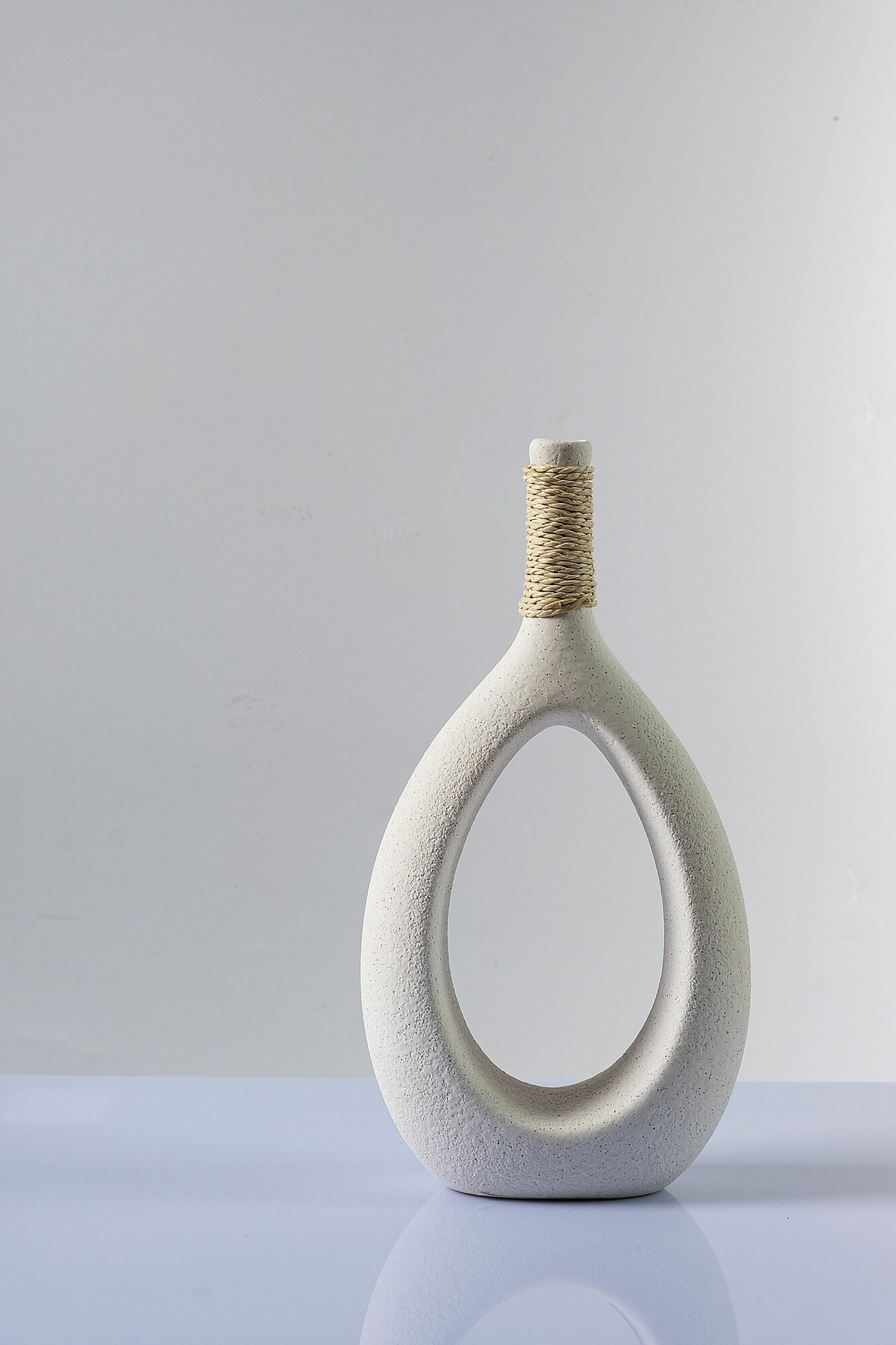 Ваза интерьерная декоративная из фарфора 23см, белая с фактурным матовым покрытием