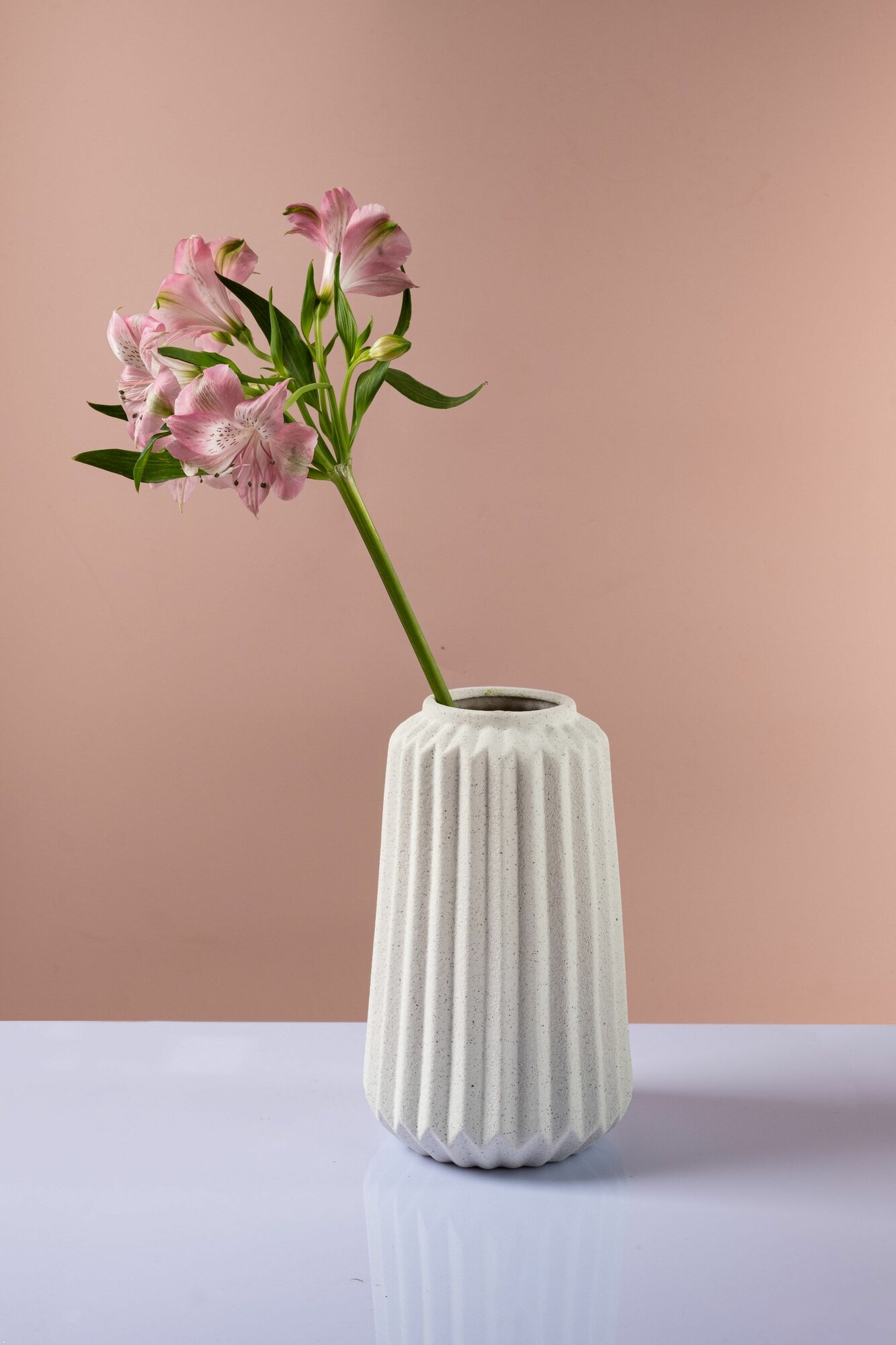 Ваза интерьерная декоративная из фарфора 26см, белая с фактурным матовым покрытием