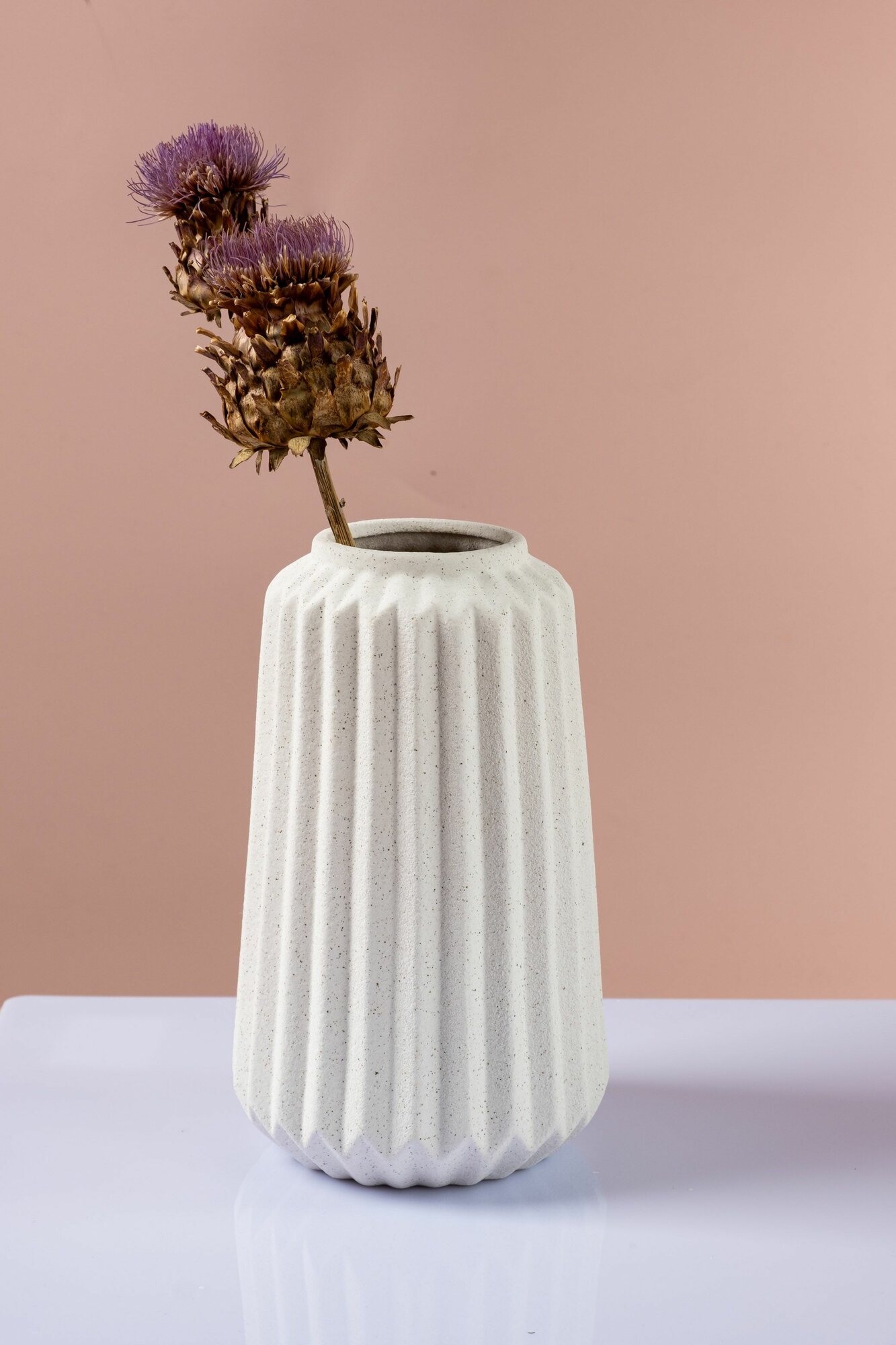 Ваза интерьерная декоративная для сухоцветов 25,5см цвет бежевый, керамика