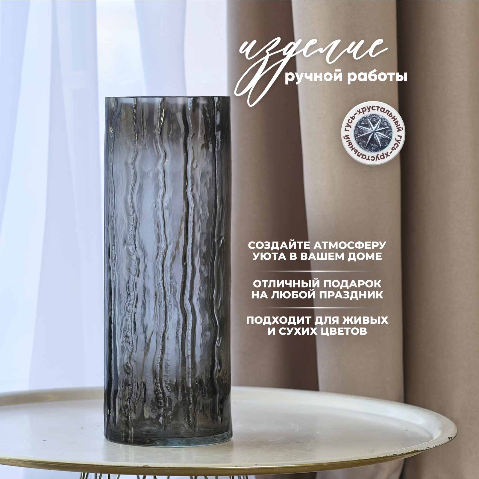 Ваза для цветов и сухоцветов высокая, декоративная интерьерная стеклянная 4 л, дымка